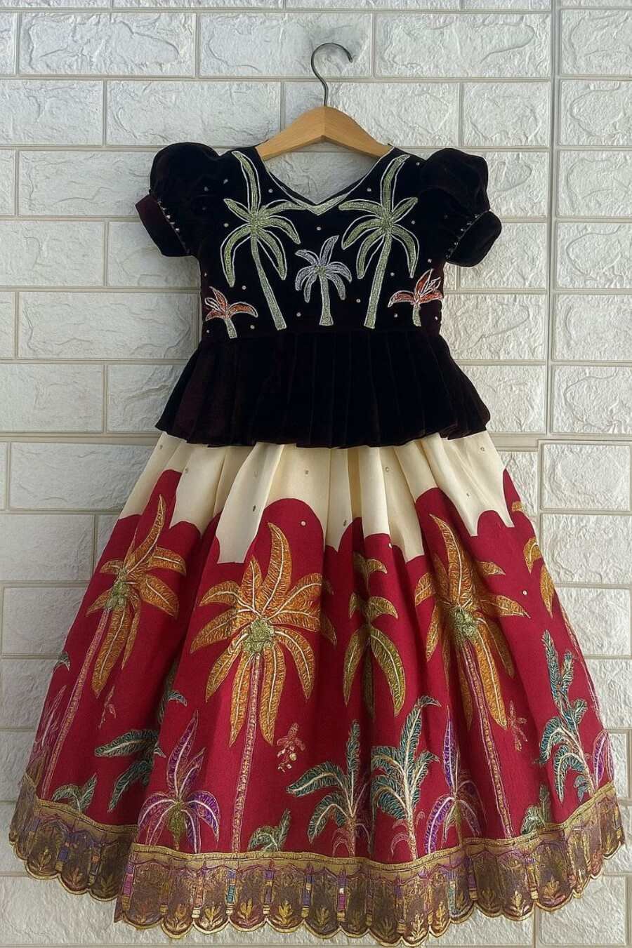 ATTRACTIVE GEORGETTE EMBROIDERY SEQUENCE WORK KID’S TOP LEHENGA RED
