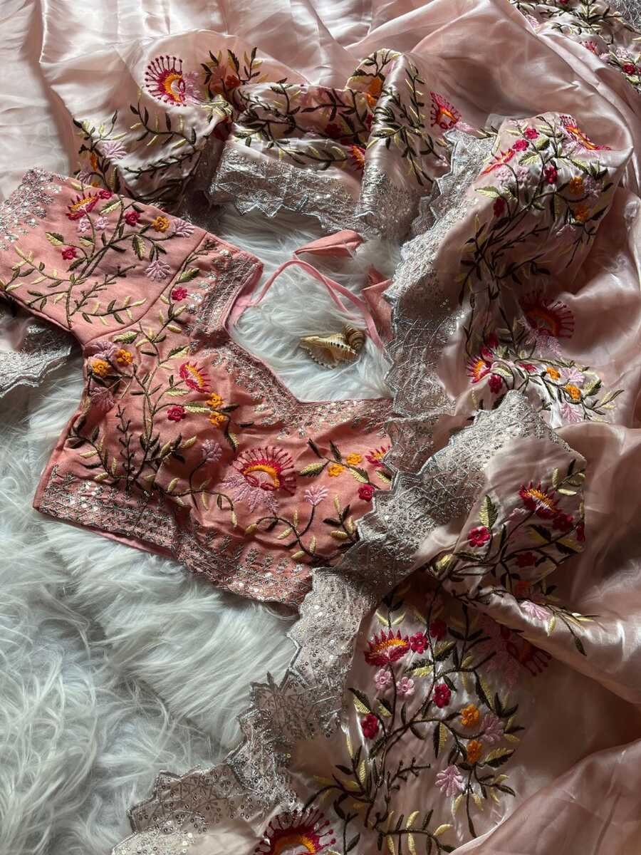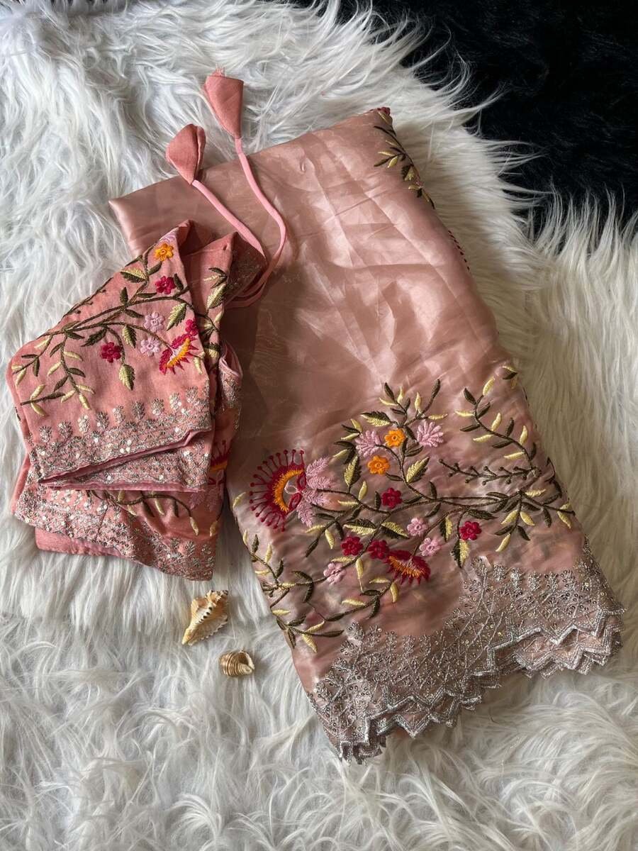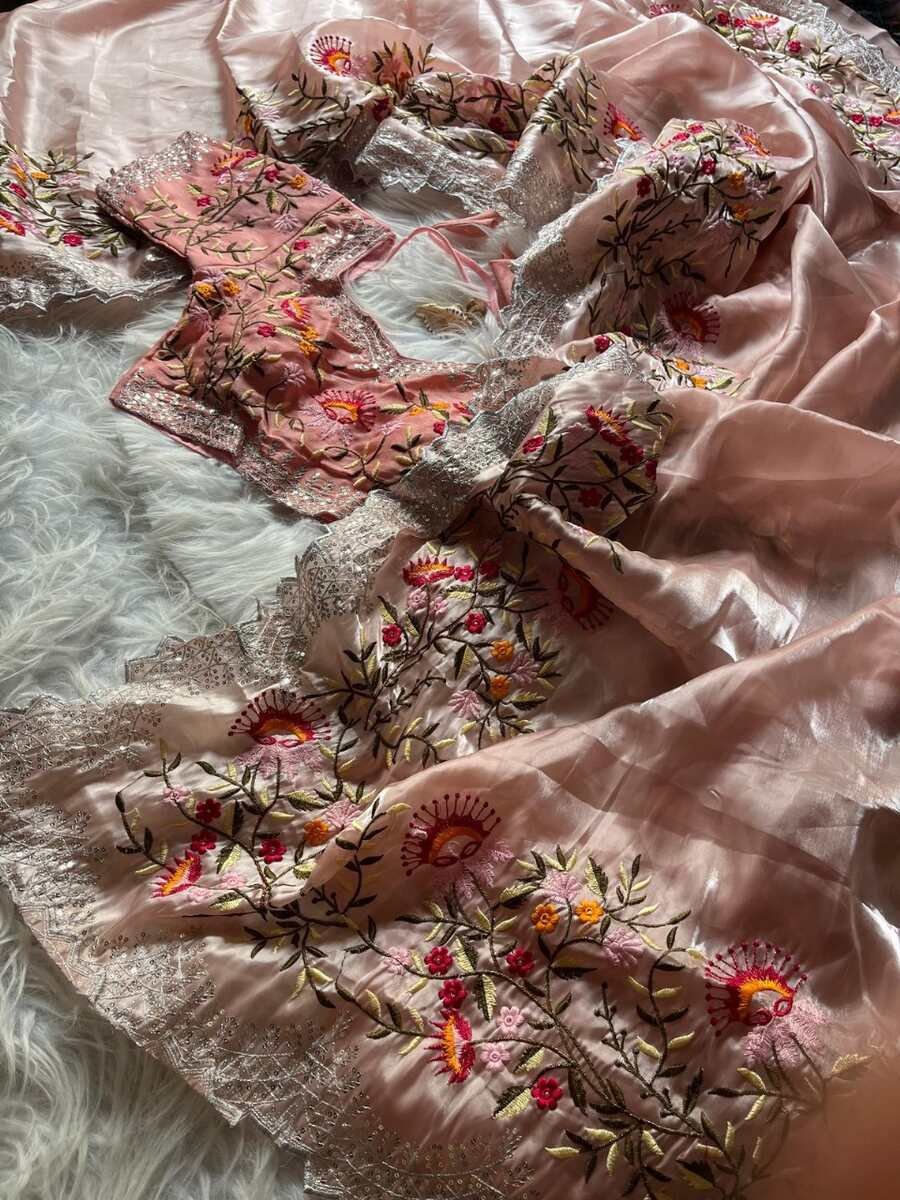 ATTRACTIVE GEORGETTE EMBROIDERY SEQUENCE WORK SAREE WITH FULLY STITCHED BLOUSE PEACH