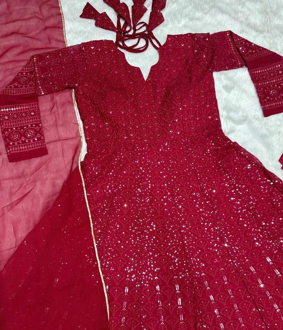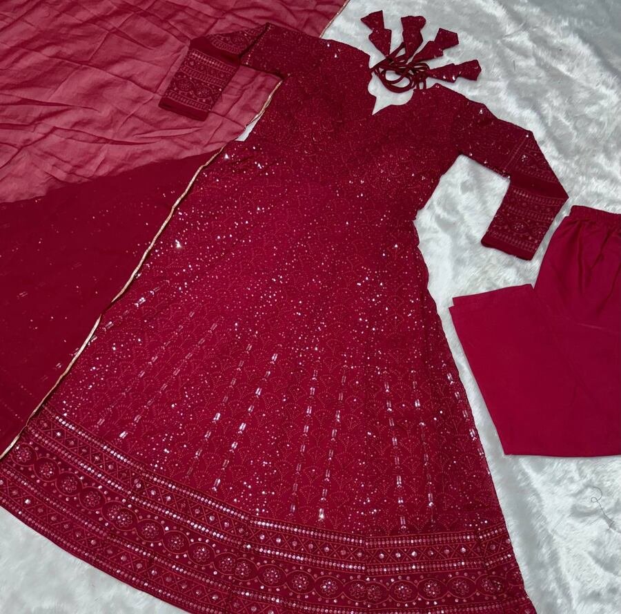 ATTRACTIVE GEORGETTE EMBROIDERY WORK GOWN PANT WITH DUPATTA PINK