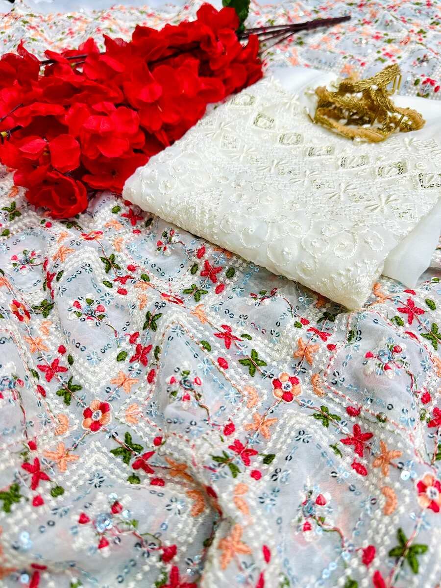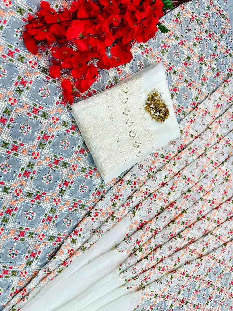 ATTRACTIVE GEORGETTE MULTI COLOUR EMBROIDERY SEQUENCE SAREE WITH UNSTITCHED BLOUSE MULTI