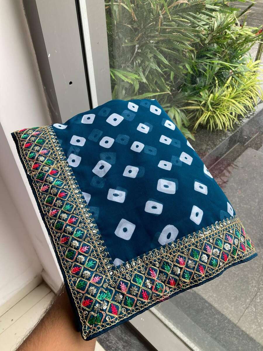 WORK : RAJWADI BANDHEJ PRINT WITH HEAVY EMBROIDERY WORK LACE BORDER