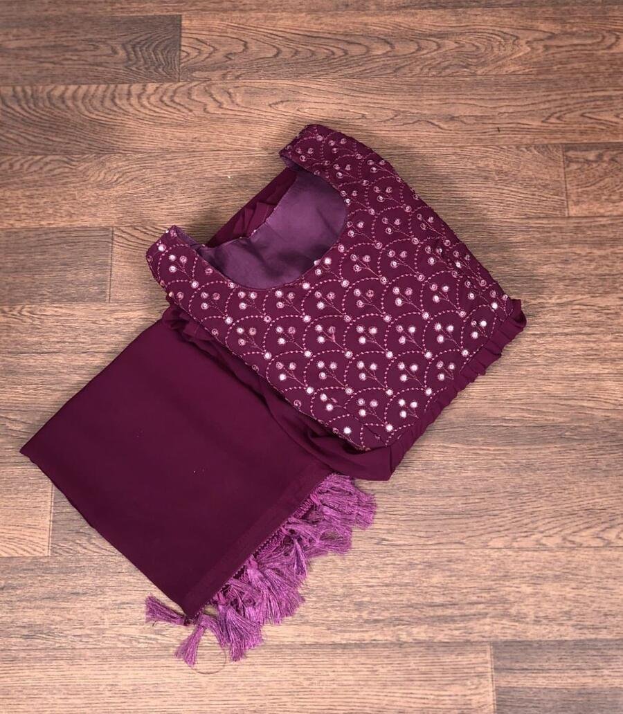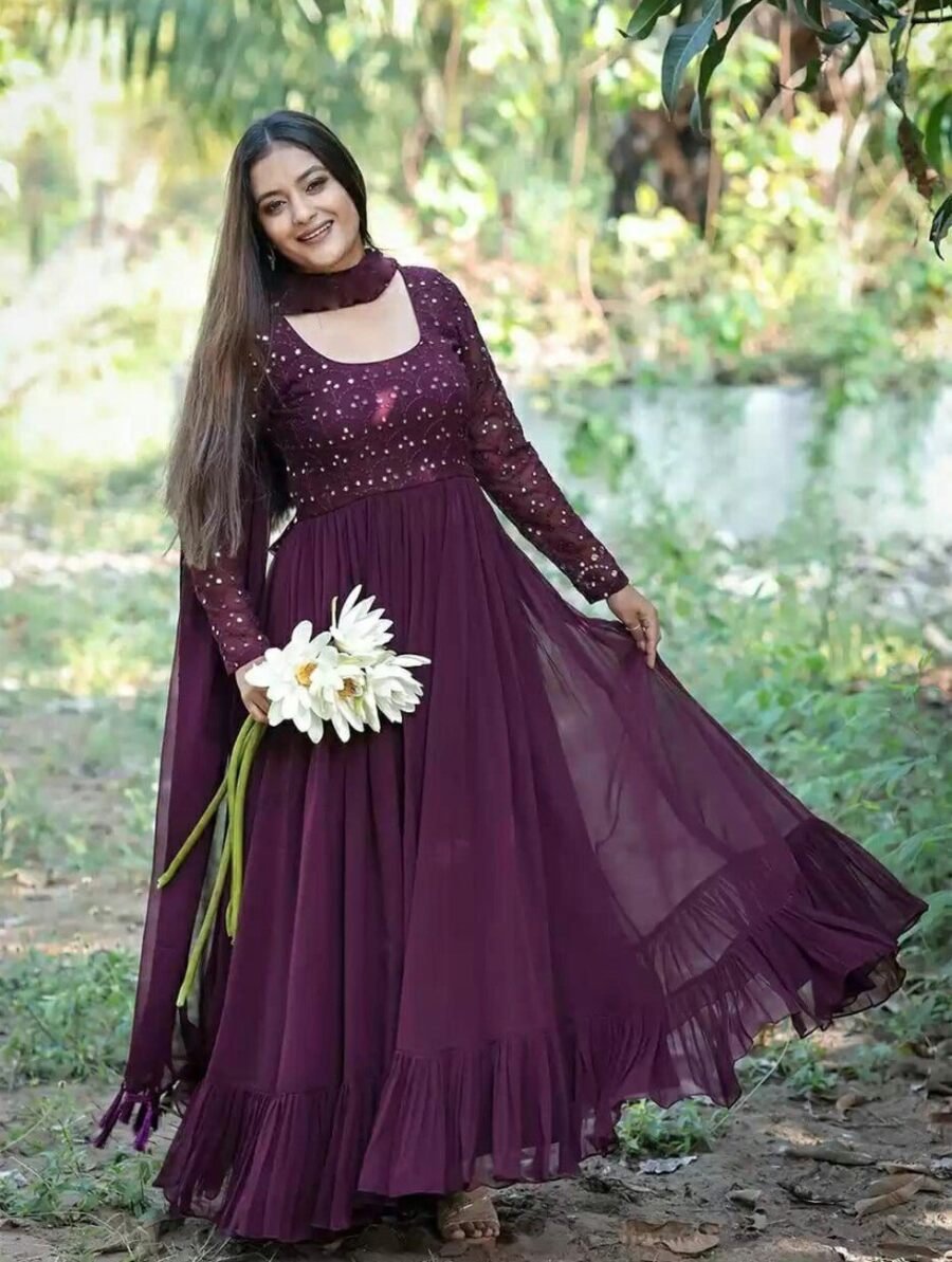 ATTRACTIVE GEORGETTE THREAD SEQUENCE ANARKALI GOWN WITH DUPATTA WINE