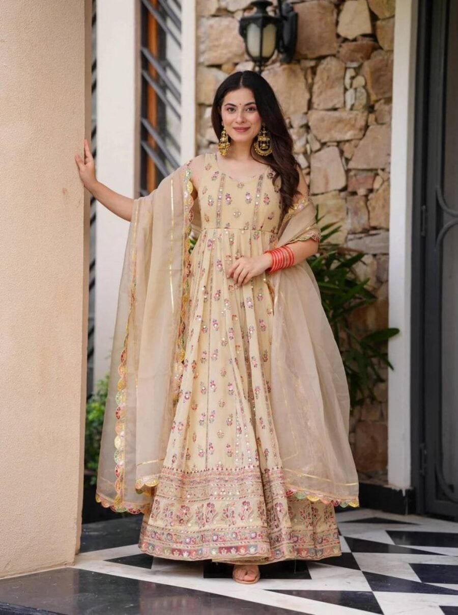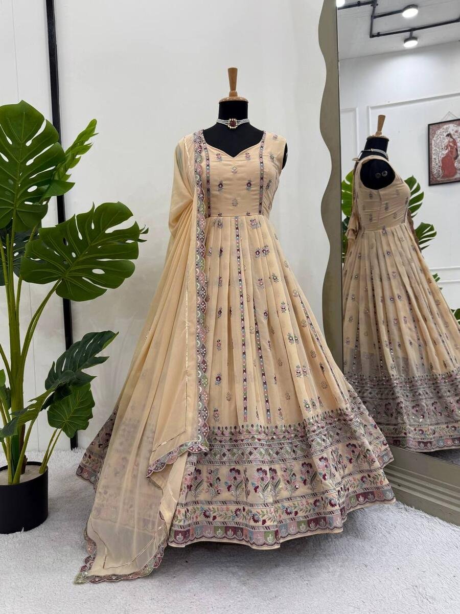 ATTRACTIVE GEORGETTE THREAD WITH SEQUENCE WORK GOWN BOTTOM WITH DUPATTA CREAM