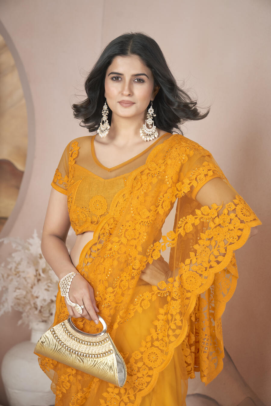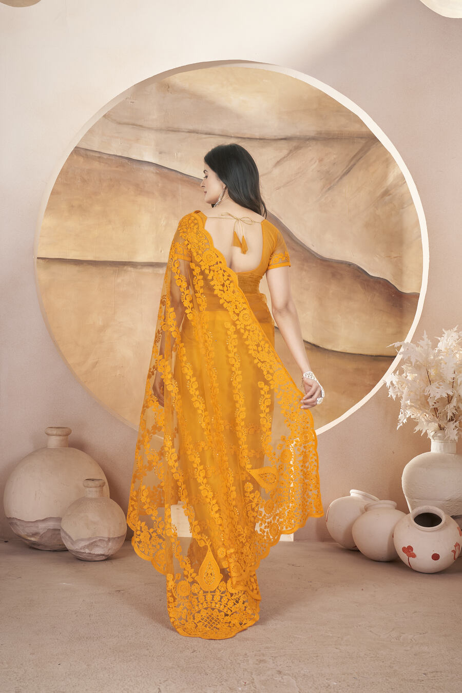 WORK : BEAUTIFUL TONE TO TONE AARI EMBROIDERY WORK WITH STONE WORK WITH RICH PALLU