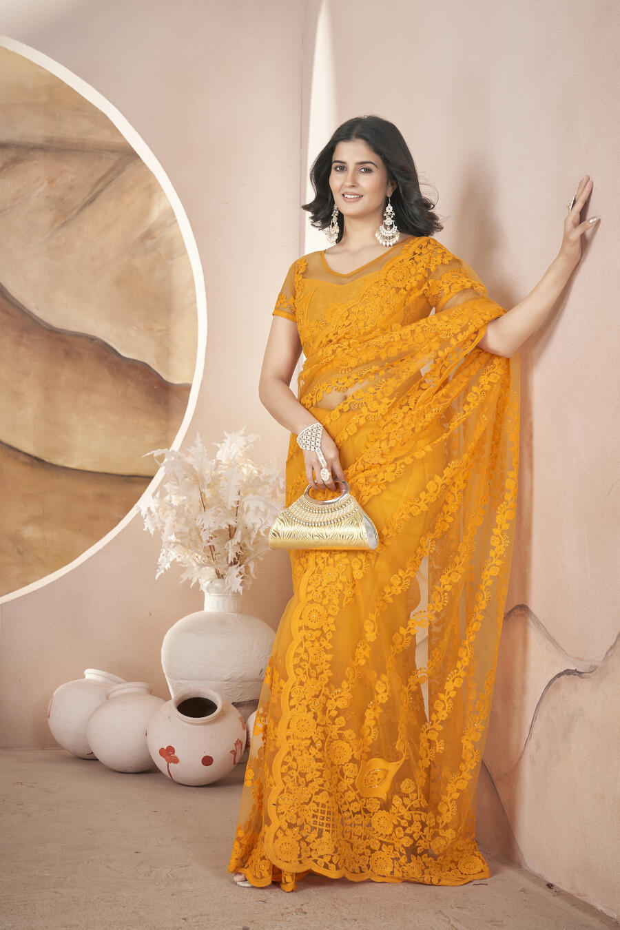 WORK : BEAUTIFUL TONE TO TONE AARI EMBROIDERY WORK WITH STONE WORK