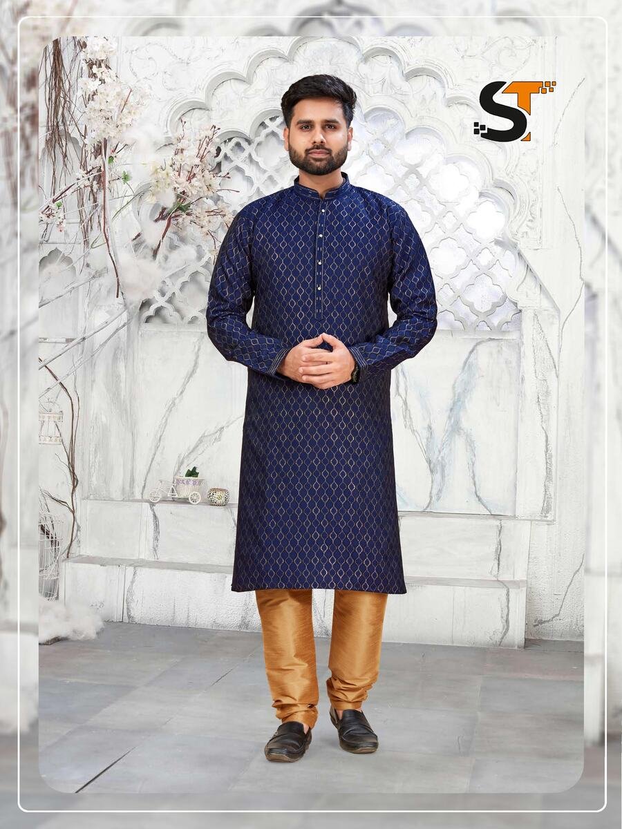 ATTRACTIVE JACQUARD MEN’S KURTA PAYJAMA BLUE