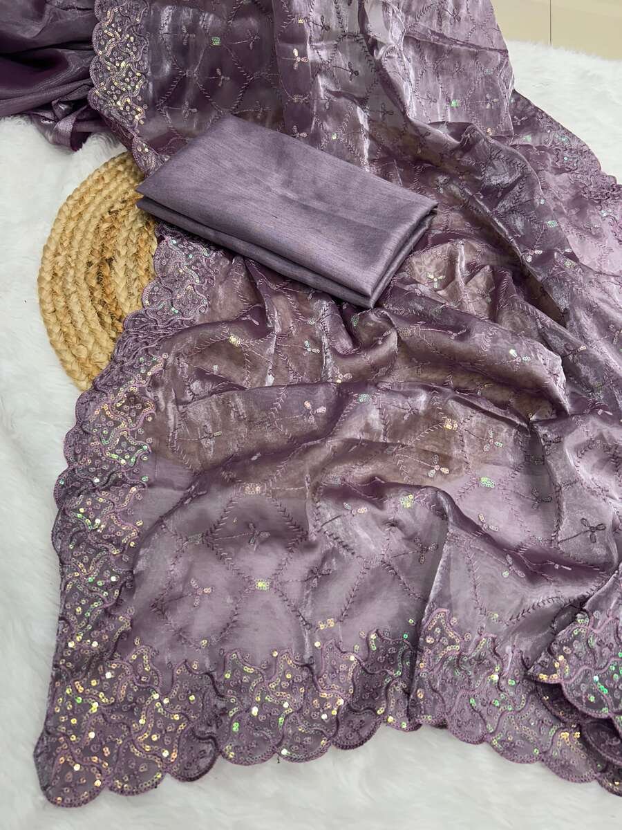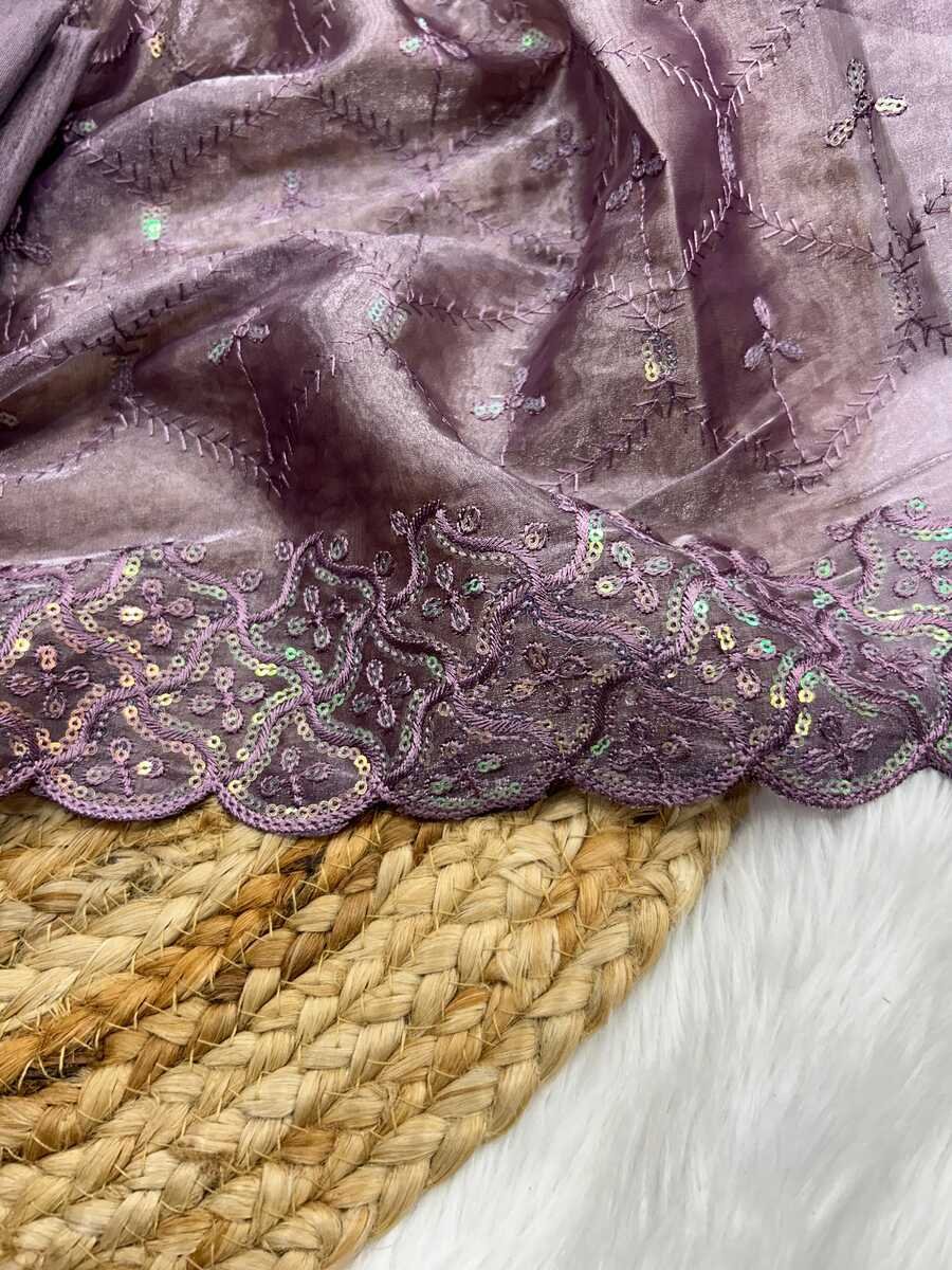 ATTRACTIVE JIMMY CHOO SEQUENCE EMBROIDERY THRAD WORK SAREE WITH UNSTITCHED BLOUSE ONION