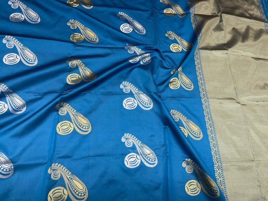 ATTRACTIVE LICHI SILK JACQUARD WORK SAREE WITH UNSTITCHED BLOUSE BLUE
