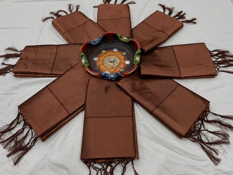 ATTRACTIVE LICHI SILK JACQUARD WORK SAREE WITH UNSTITCHED BLOUSE BROWN