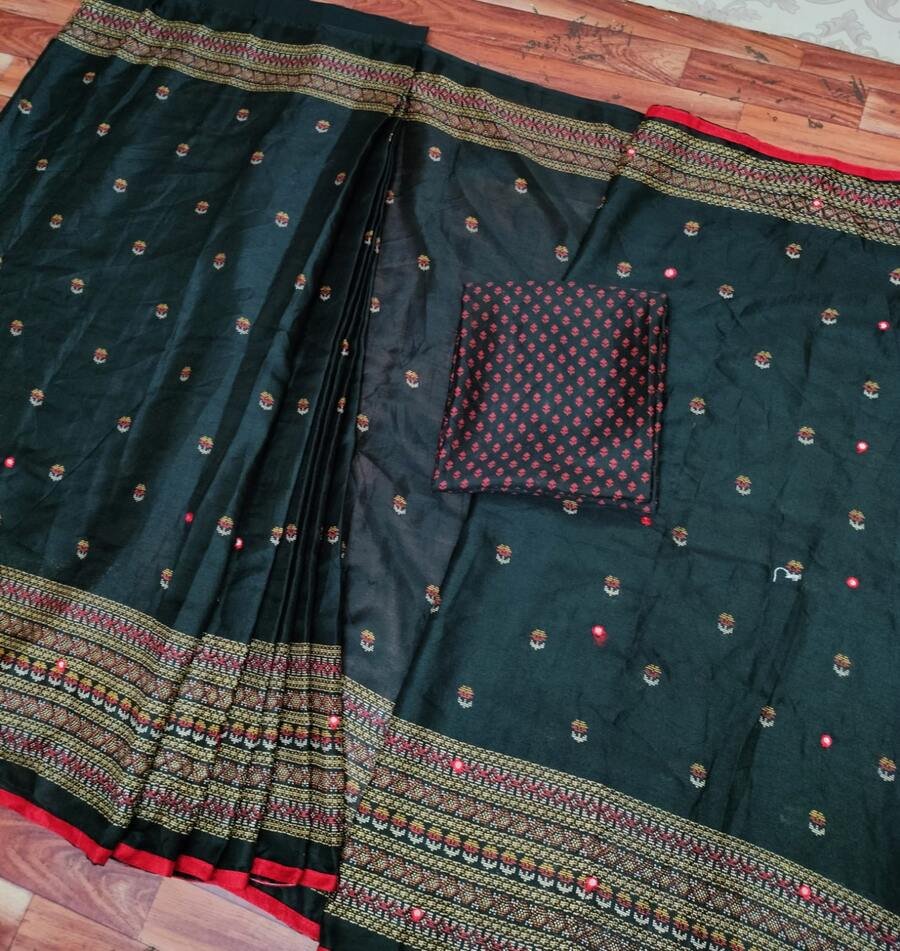 SAREE FABRIC : JUTE SILK LINEN MIRROR WORK