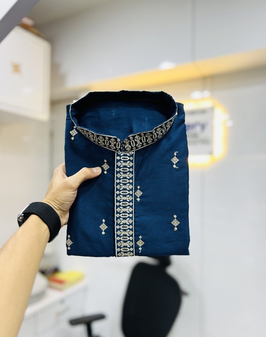 ATTRACTIVE MATKA SILK SILVER JARI WITH EMBROIDERY BUTI KURTA PAYJAMA TEAL