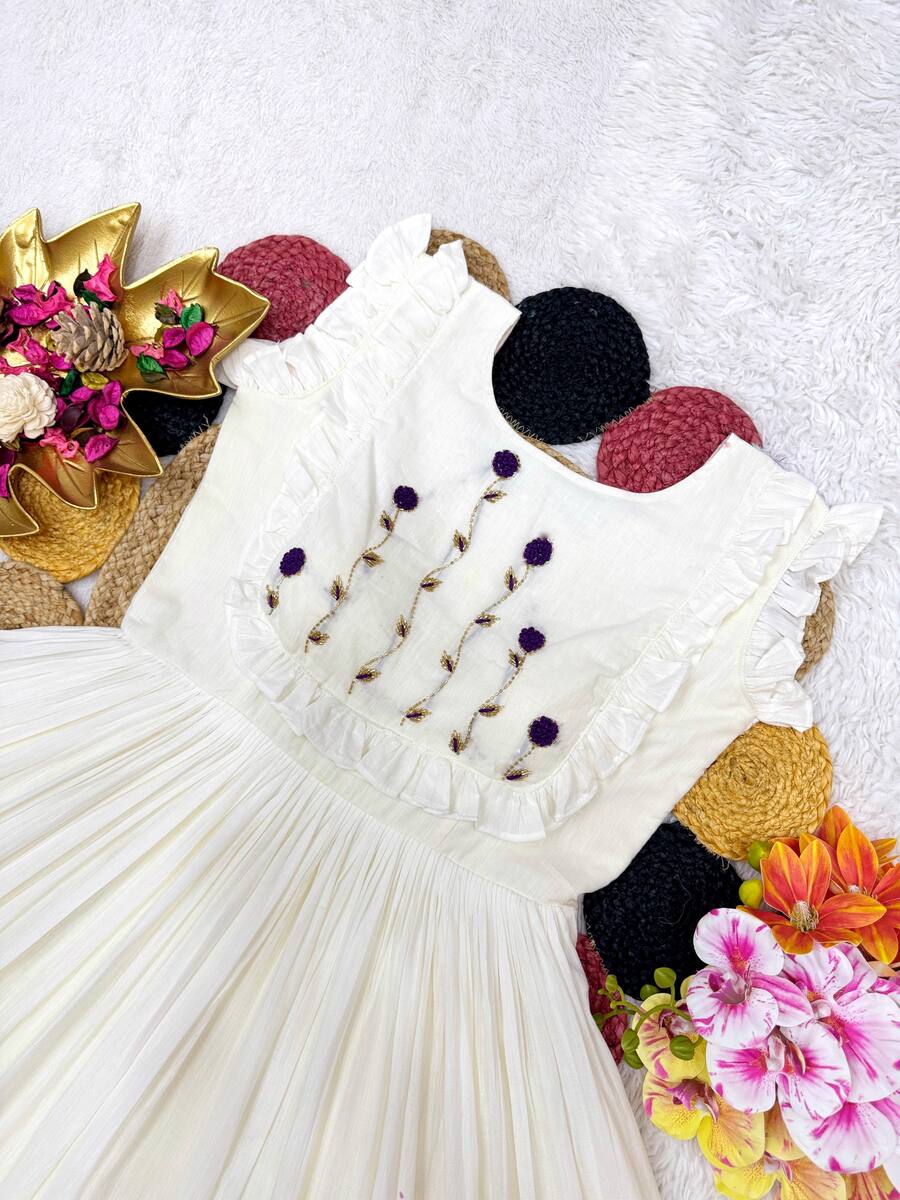 ATTRACTIVE MUL MUL COTTON HAND WORK AND MUGGAM WORK GOWN WHITE