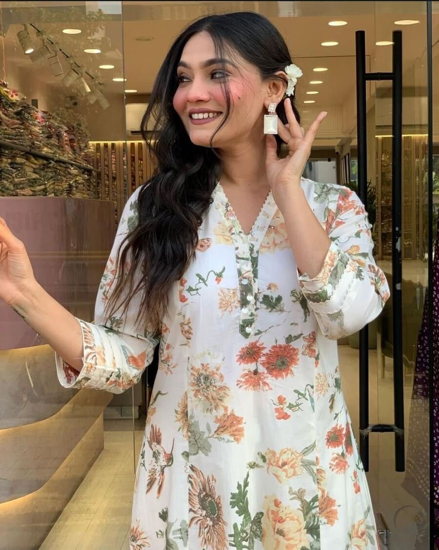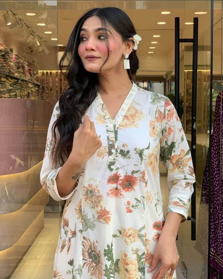 WORK : DIGITAL PRINTED WITH SEQUANCE WORK AND LACE BORDER