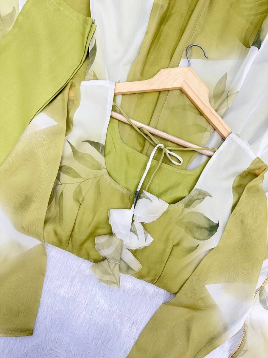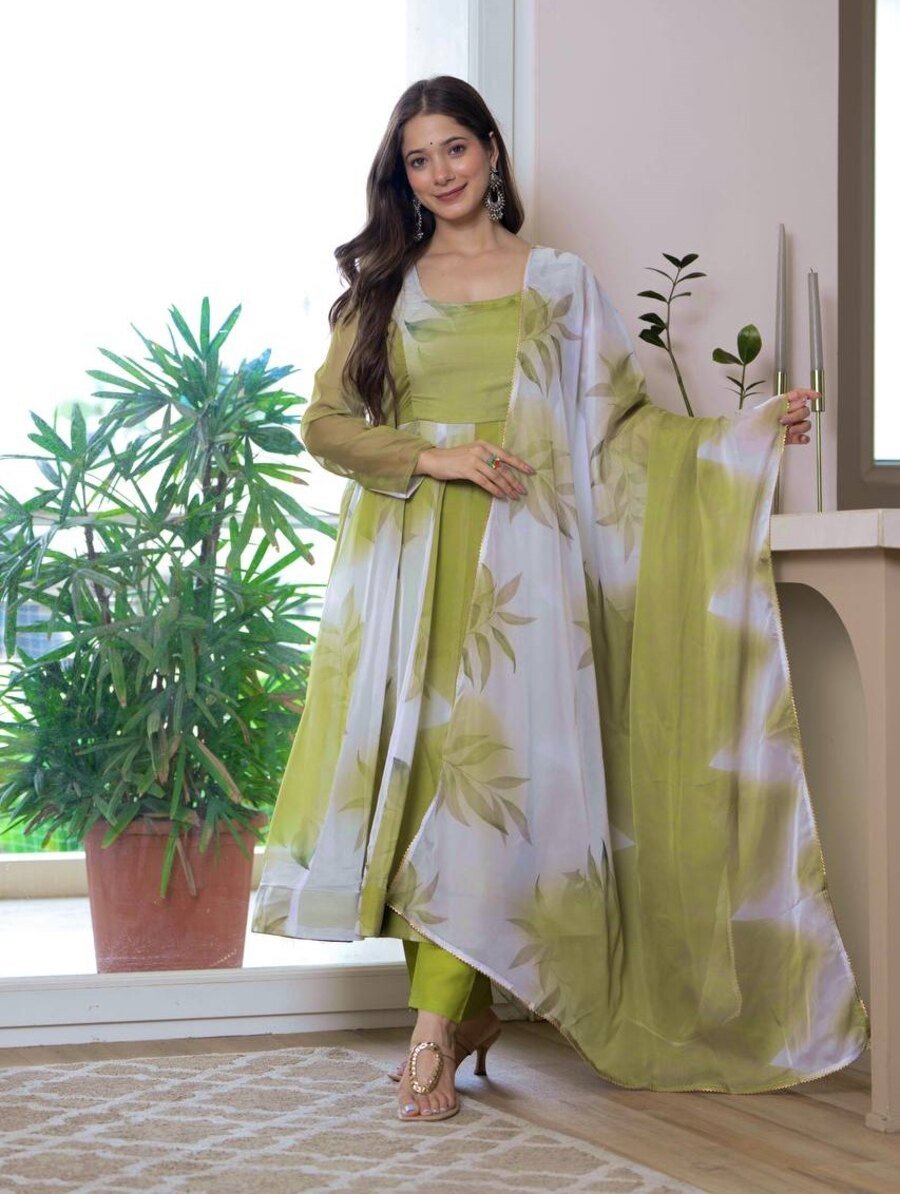 ATTRACTIVE ORGANZA FLORAL PRINT WORK ANARKALI GOWN BOTTOM WITH DUPATTA GREEN