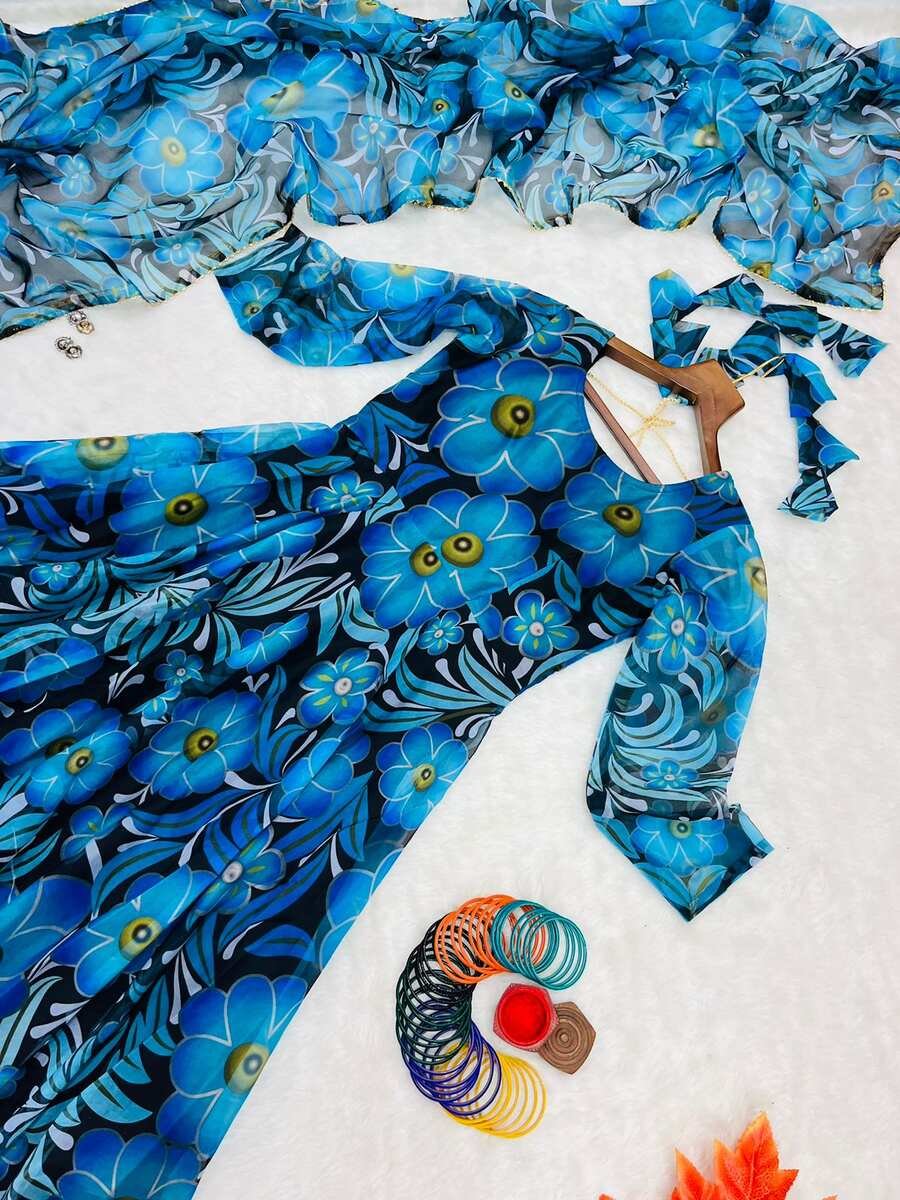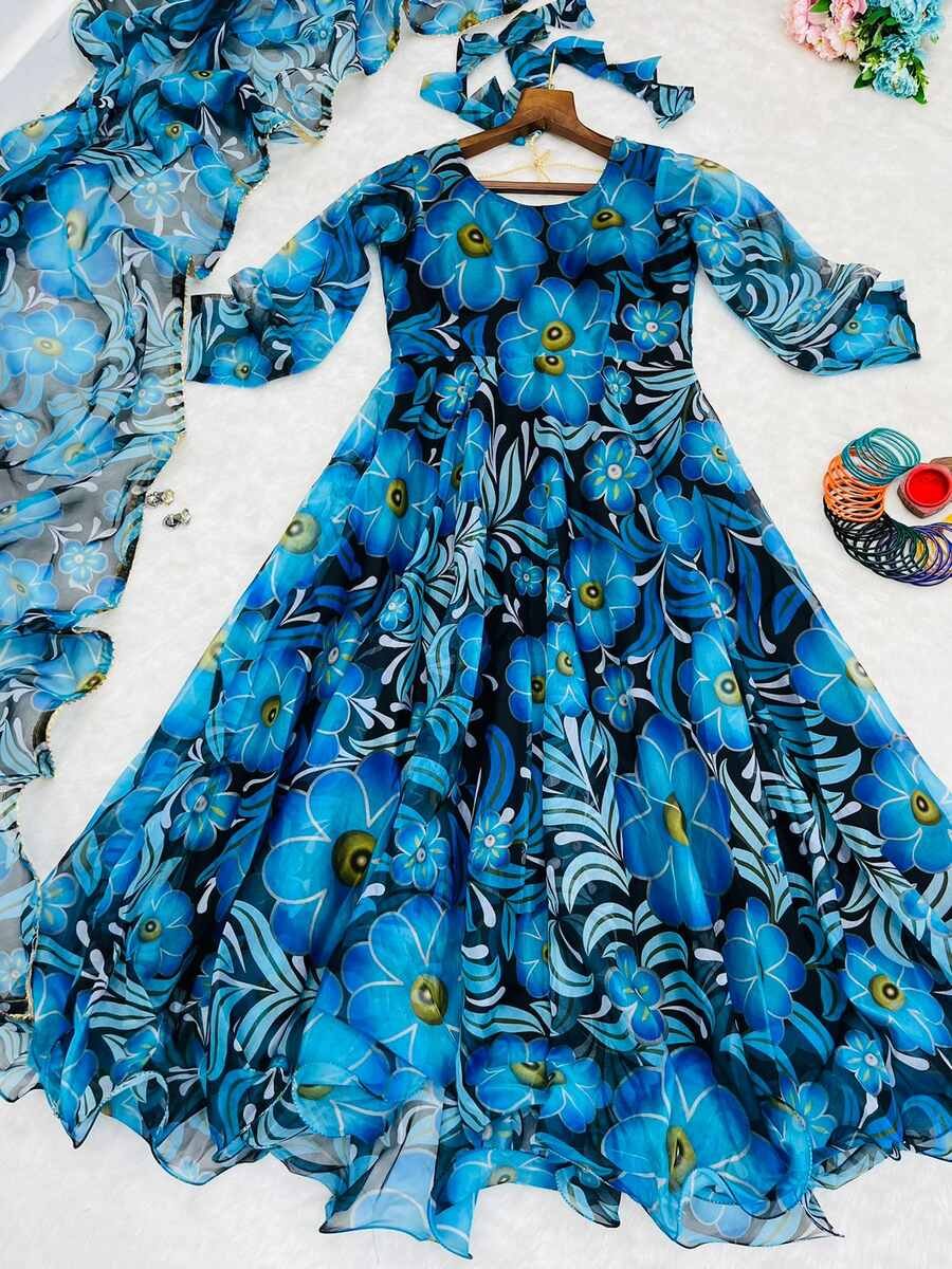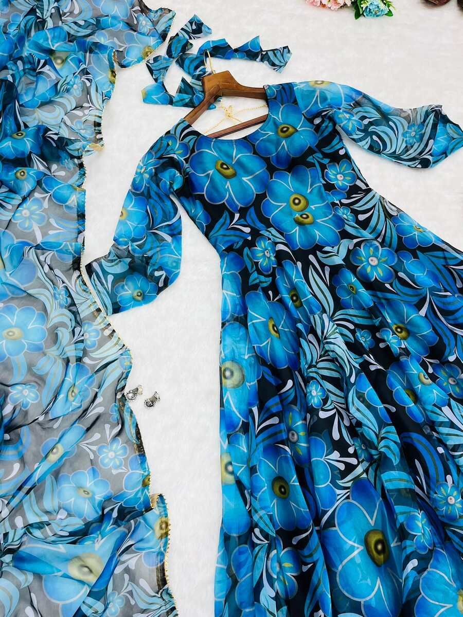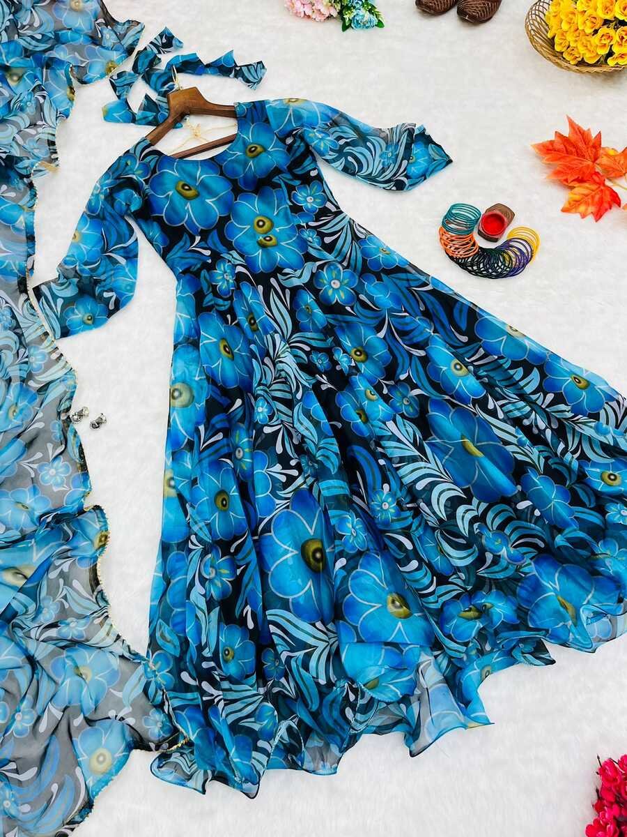 GOWN FEBRICS ORGANZA TUBBY SILK HEAVY FABRIC WITH DIGITAL PRINT AND HANDWORK FULL SLEEVE