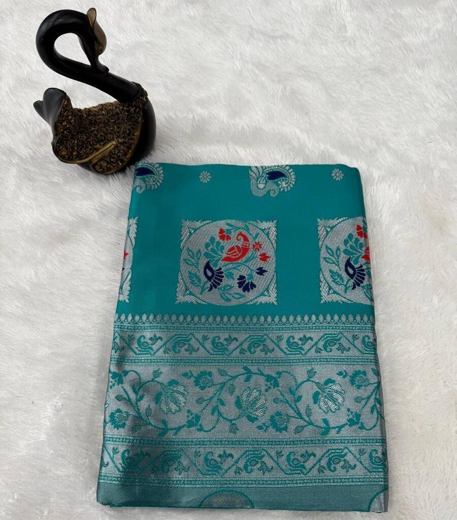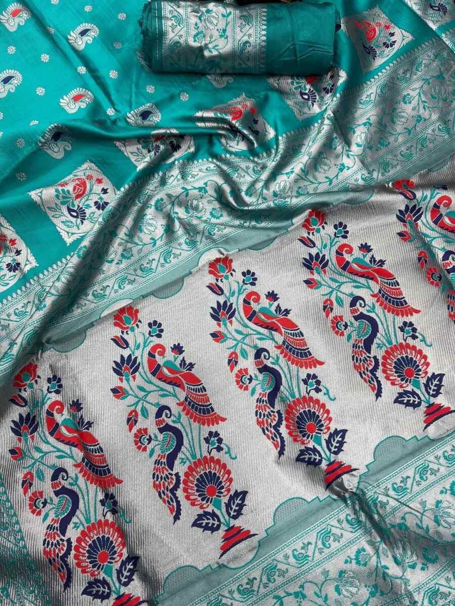 ATTRACTIVE PAITHANI SILK ZARI MEENAKARI WEAVING SAREE WITH UNSTITCHED BLOUSE RAMA