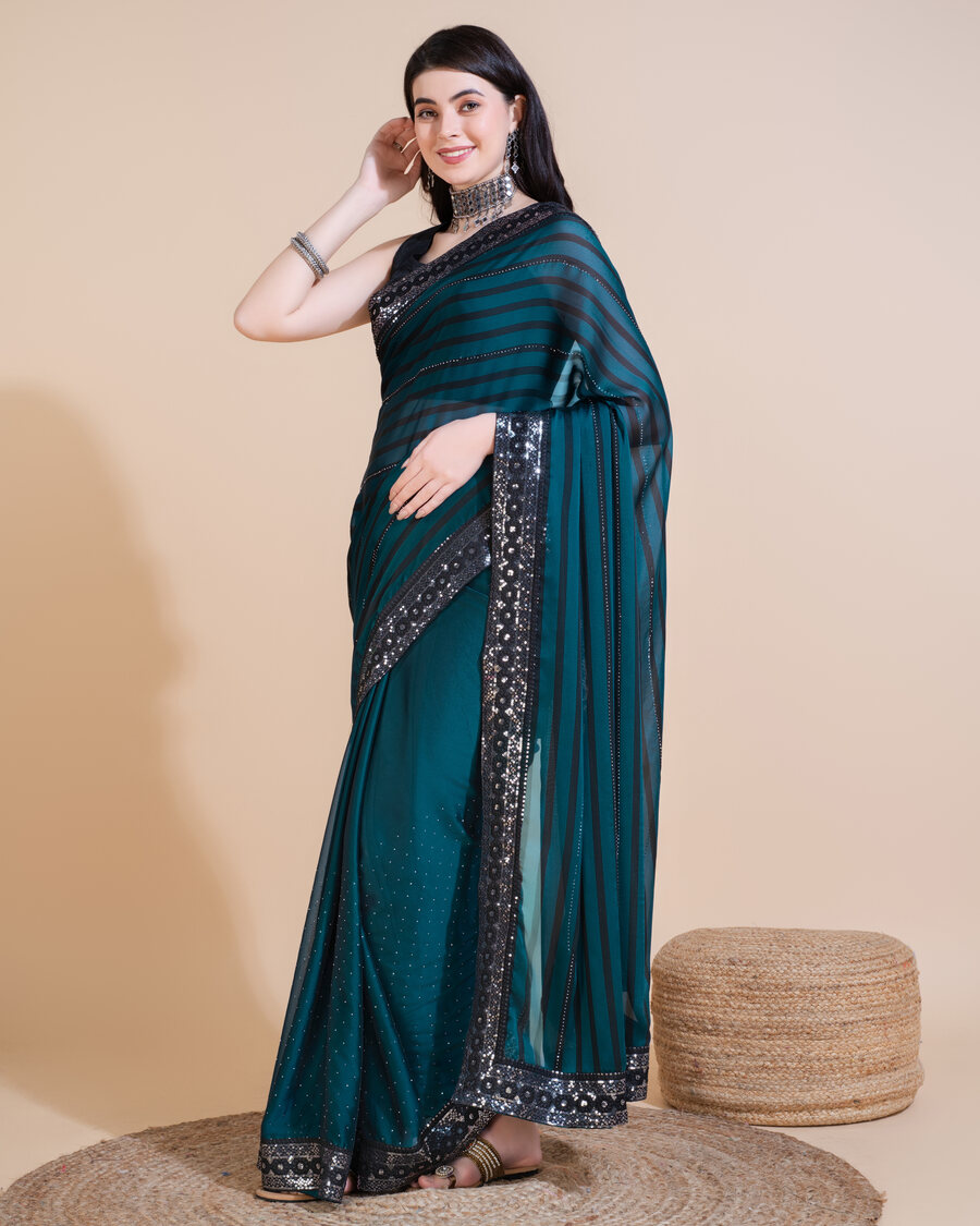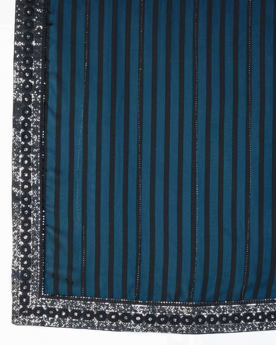 WORK : BEAUTIFUL LEHERIYA WOVEN DESIGN WITH HOT FIX WORK AND SEQUENCE EMBROIDERY WORK