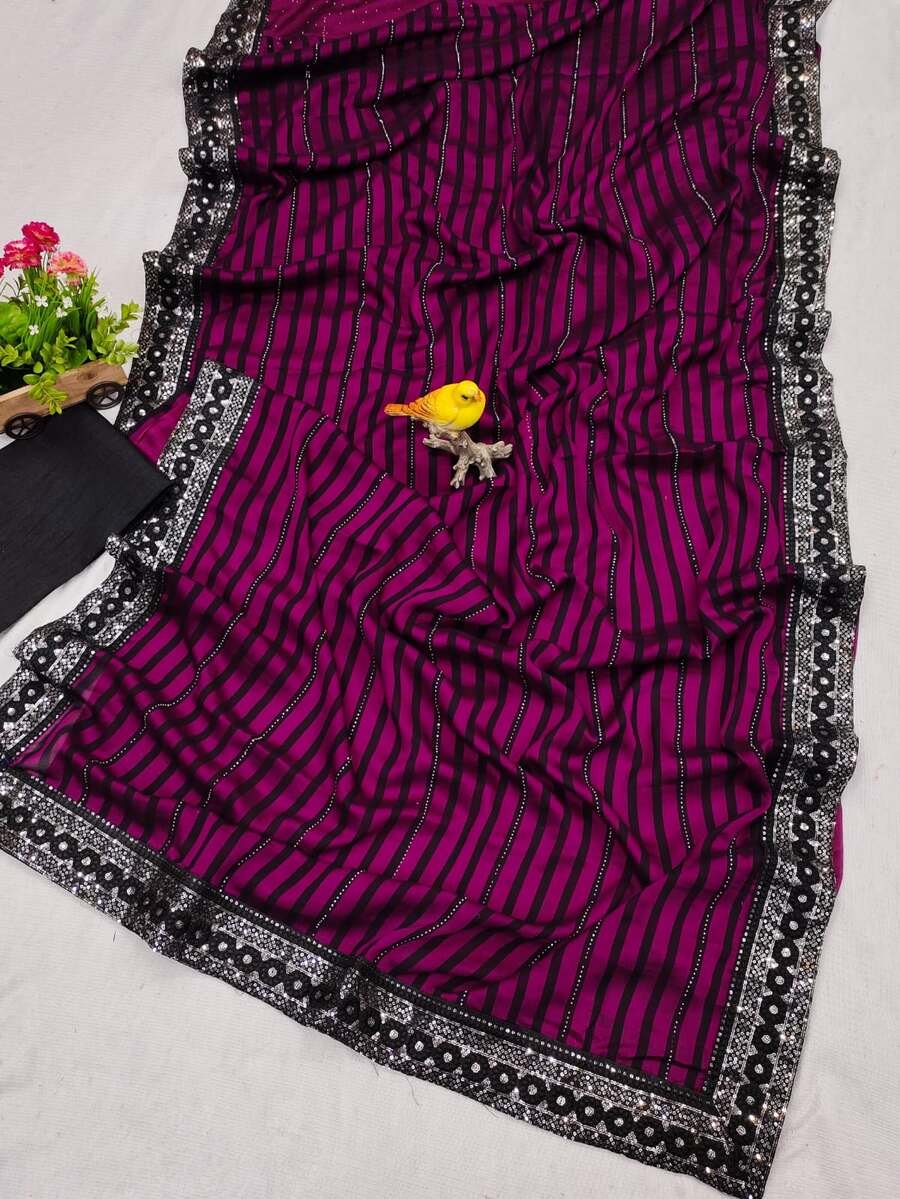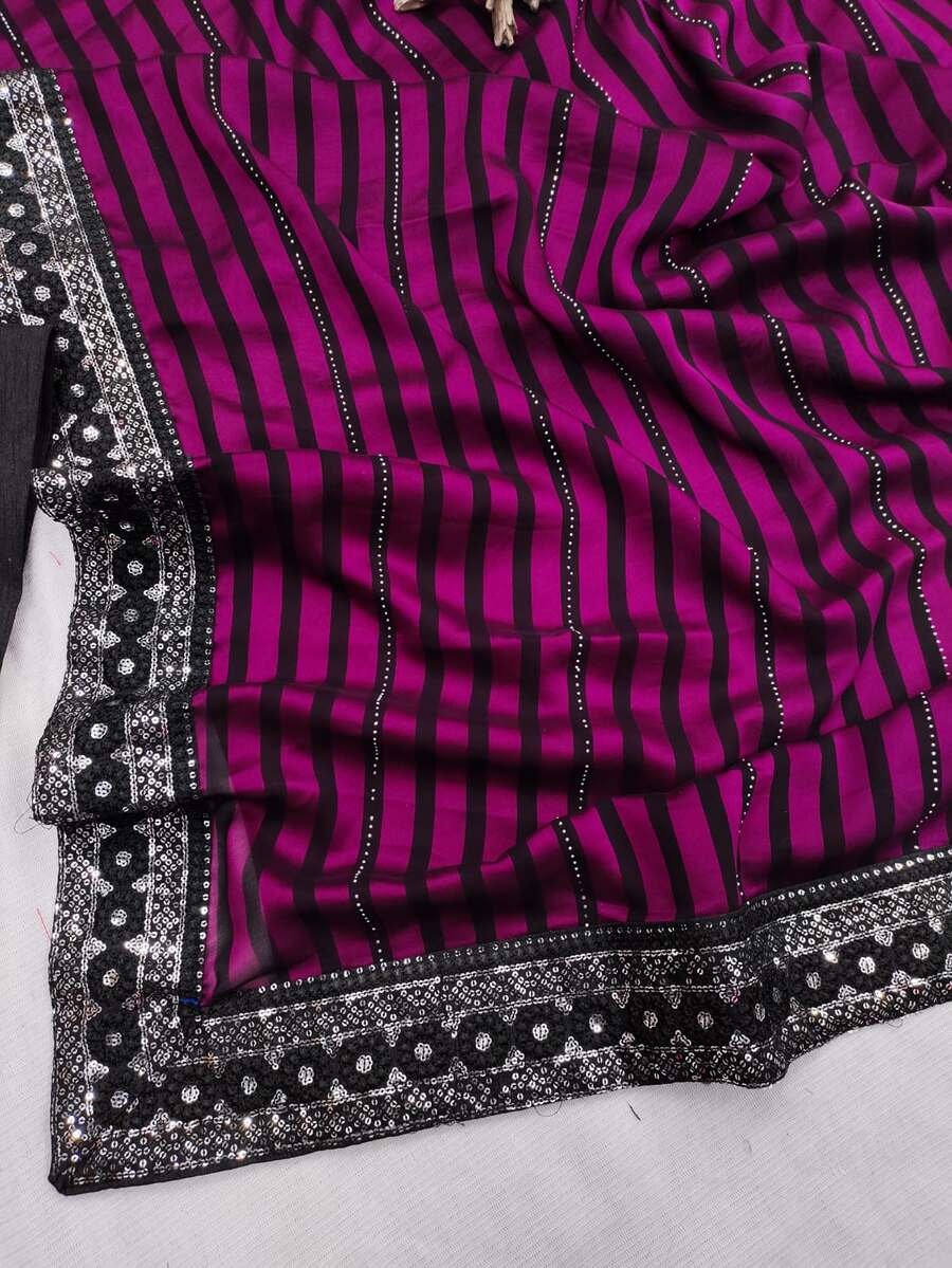 WORK : BEAUTIFUL LEHERIYA WOVEN DESIGN WITH HOT FIX WORK AND SEQUENCE EMBROIDERY WORK