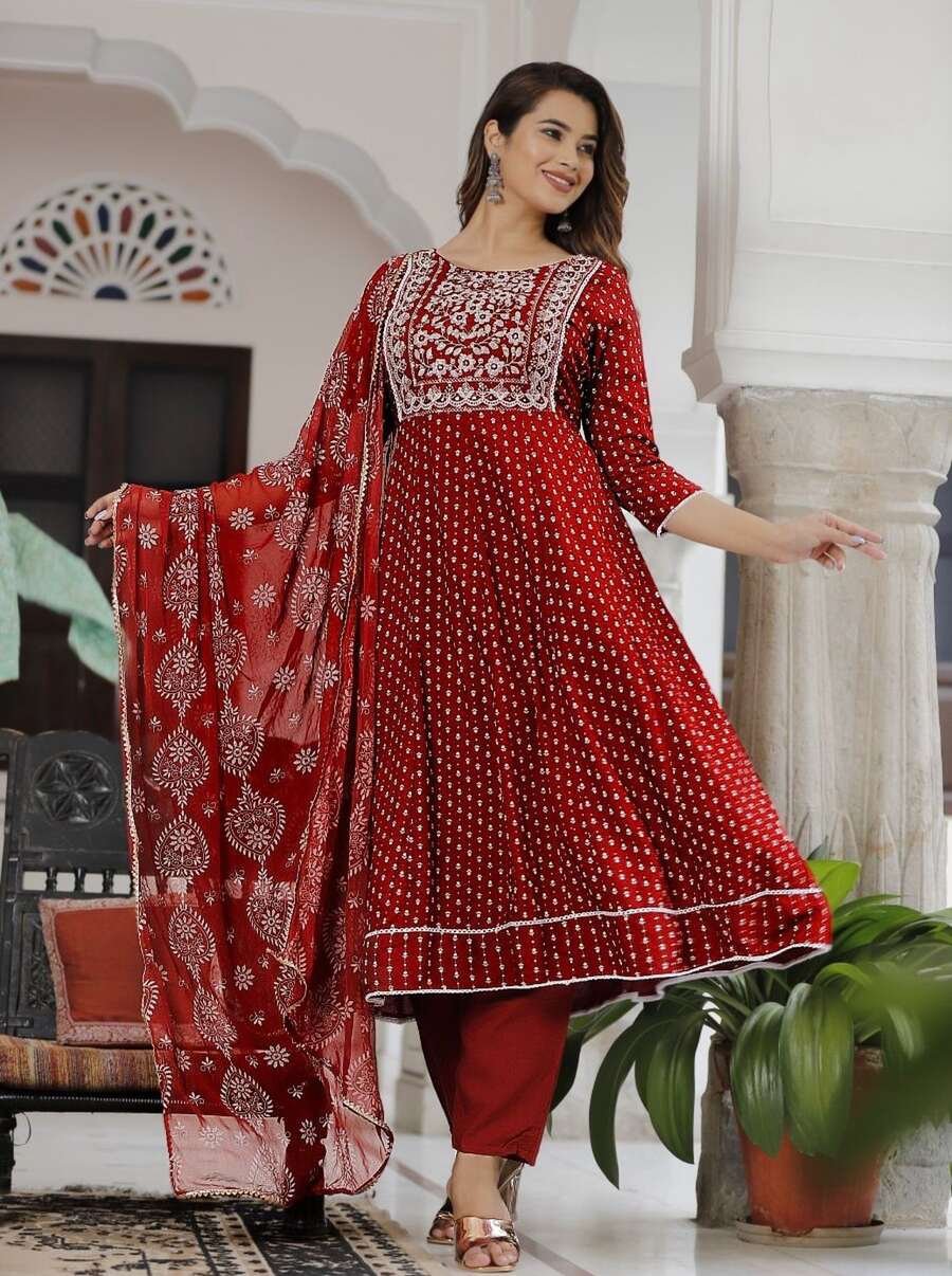 ATTRACTIVE RAYON EMBROIDERY FOIL PRINTED TOP BOTTOM WITH CHINON DUPATTA MAROON