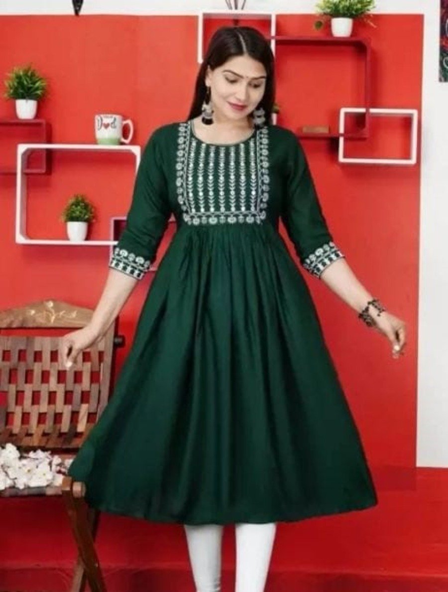 ATTRACTIVE RAYON EMBROIDERY WORK KURTI GREEN