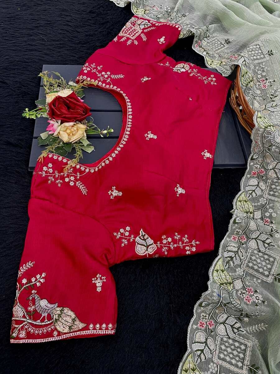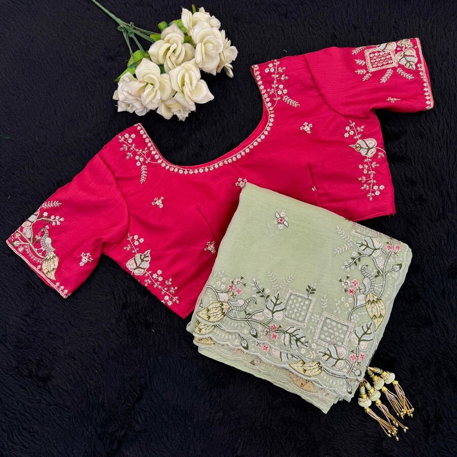 ATTRACTIVE SOFT CRUNCHY EMBROIDERY SEQUENCE WORK SAREE WITH UNSTITCHED BLOUSE SEA GREEN