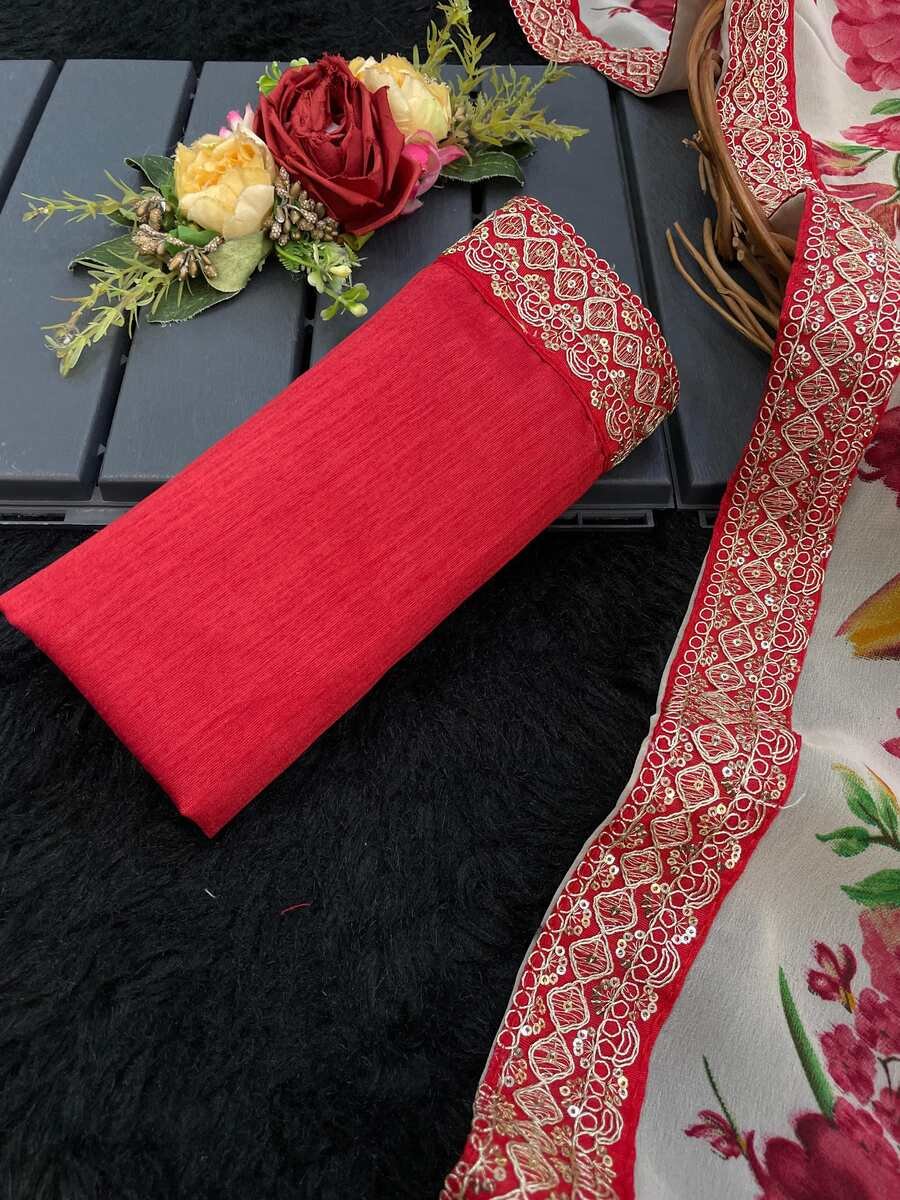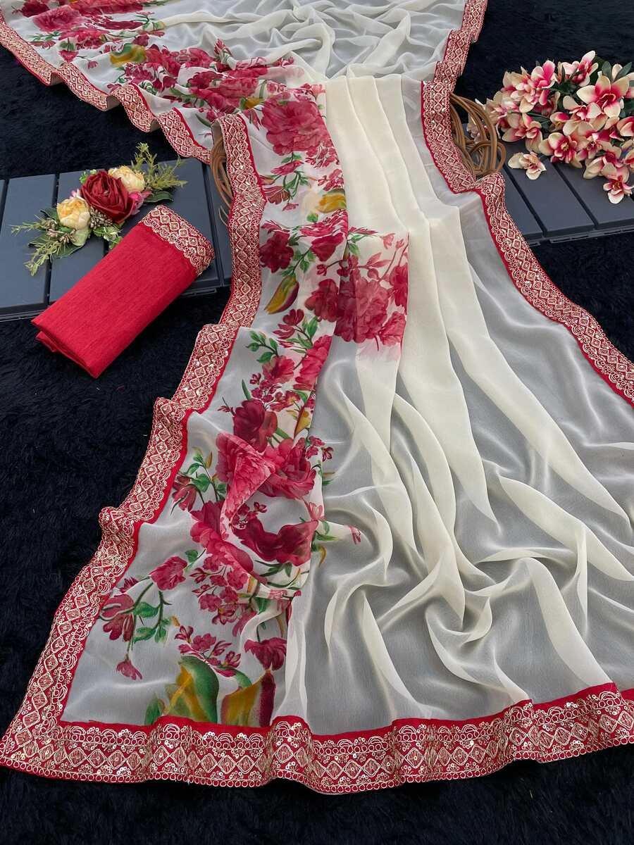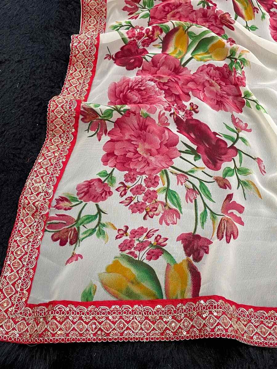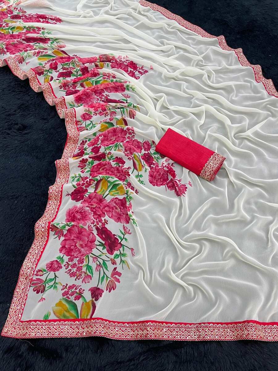 ATTRACTIVE SOFT GEORGETTE EMBROIDERY WORK LACE SAREE WITH UNSTITCHED BLOUSE WHITE