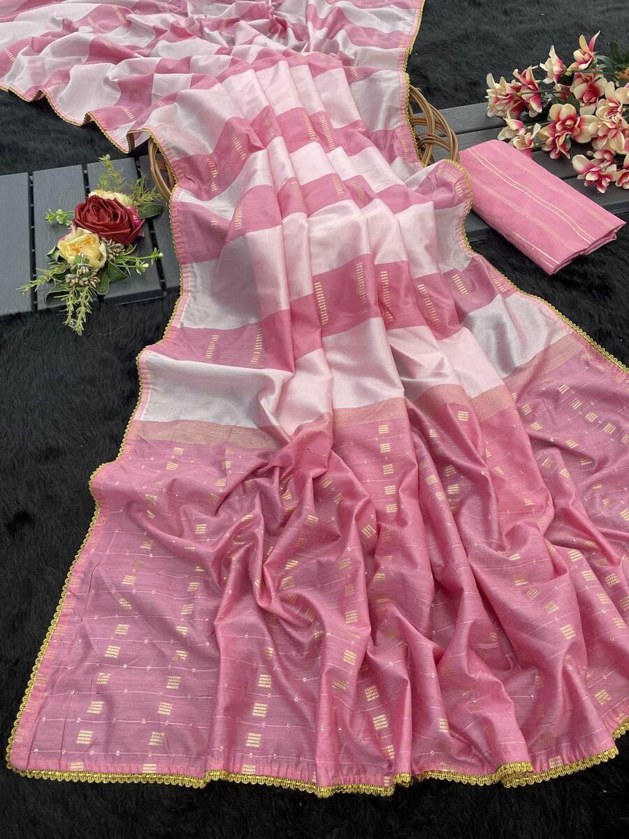 SAREE FABRIC :- SOFT SILK WITH HAND DYE AND ALL OVER WEAVING READY MADE LACE BORDER ATTCHED WITH RICH PALLU