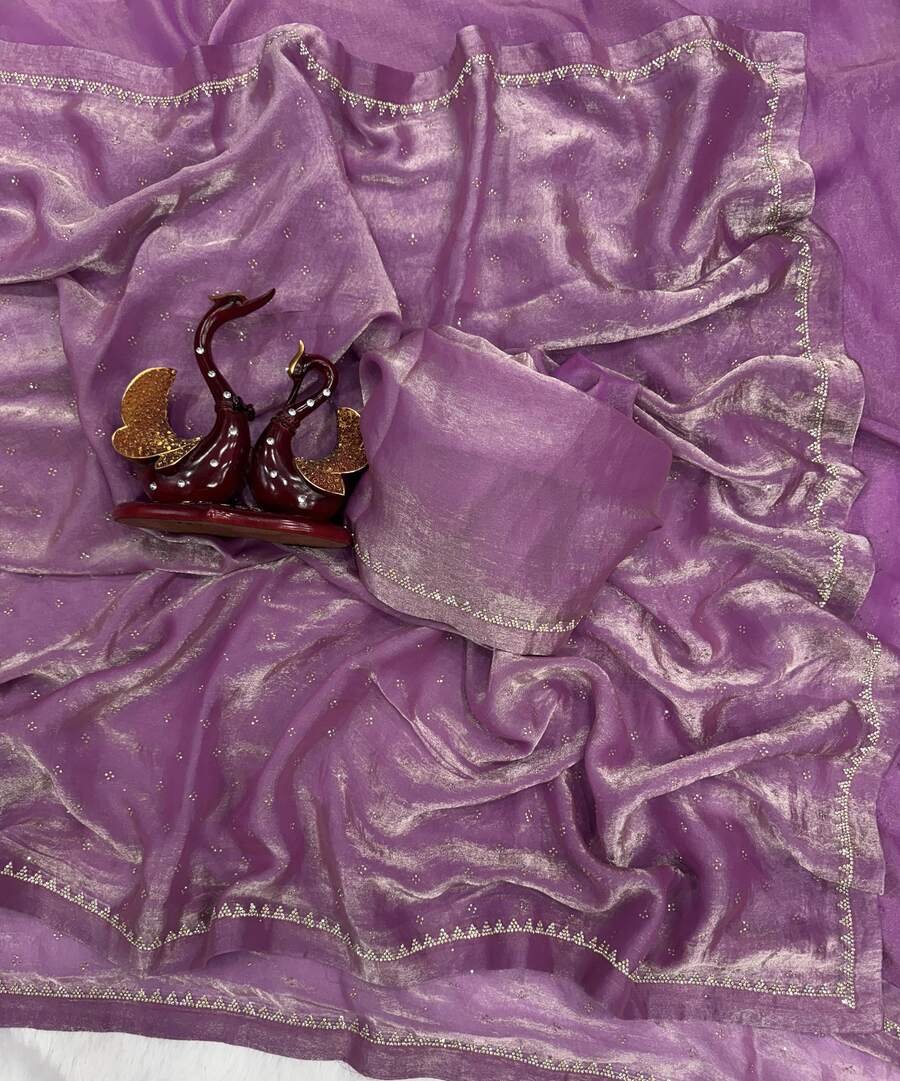ATTRACTIVE SPACE SILK JARKAN DIAMOND HANDWORK SAREE WITH UNSTITCHED BLOUSE LAVENDER