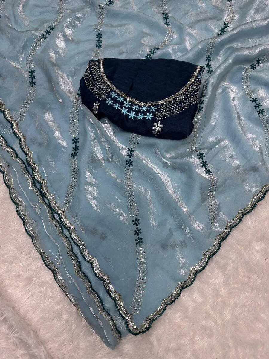 ATTRACTIVE SPACE SILK SEQUENCE AND ZARI EMBROIDERY WORK SAREE WITH UNSTITCHED BLOUSE GREY