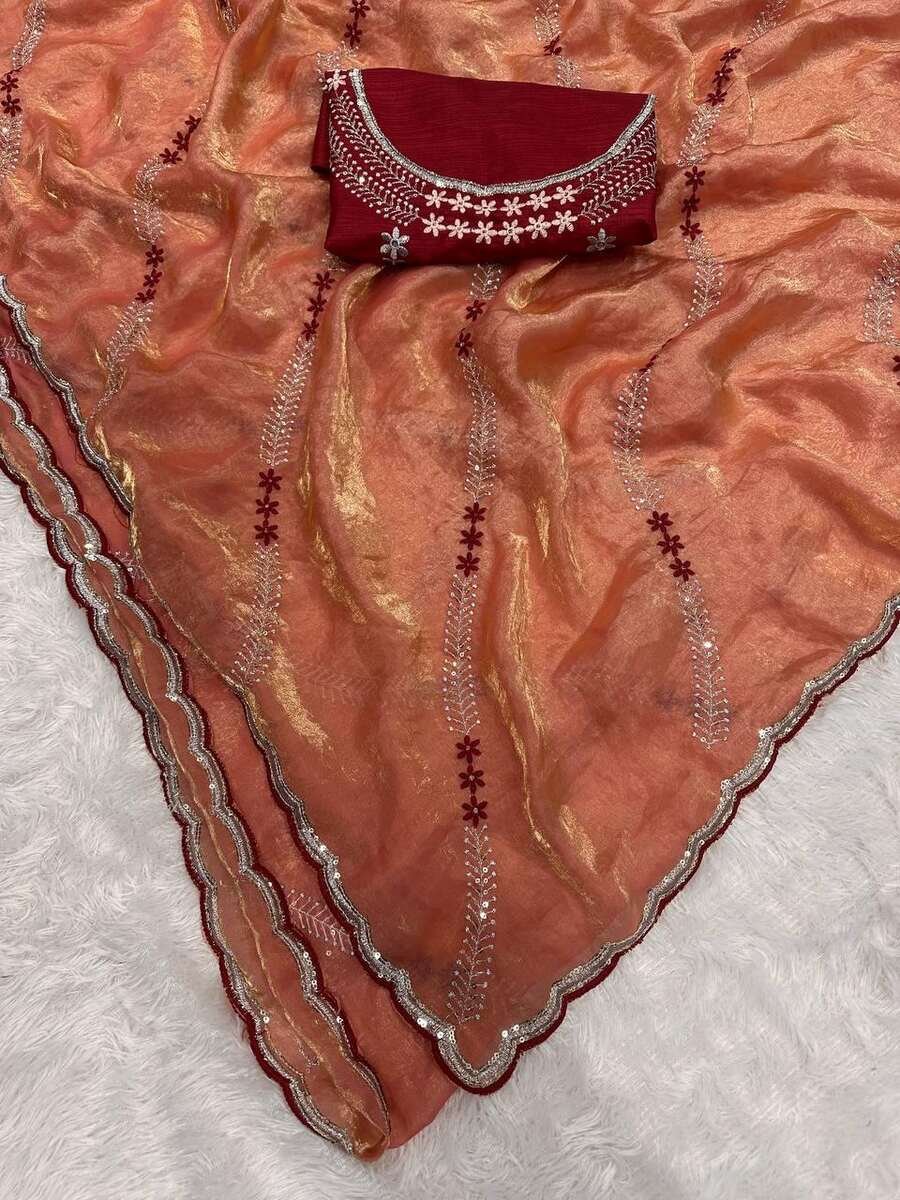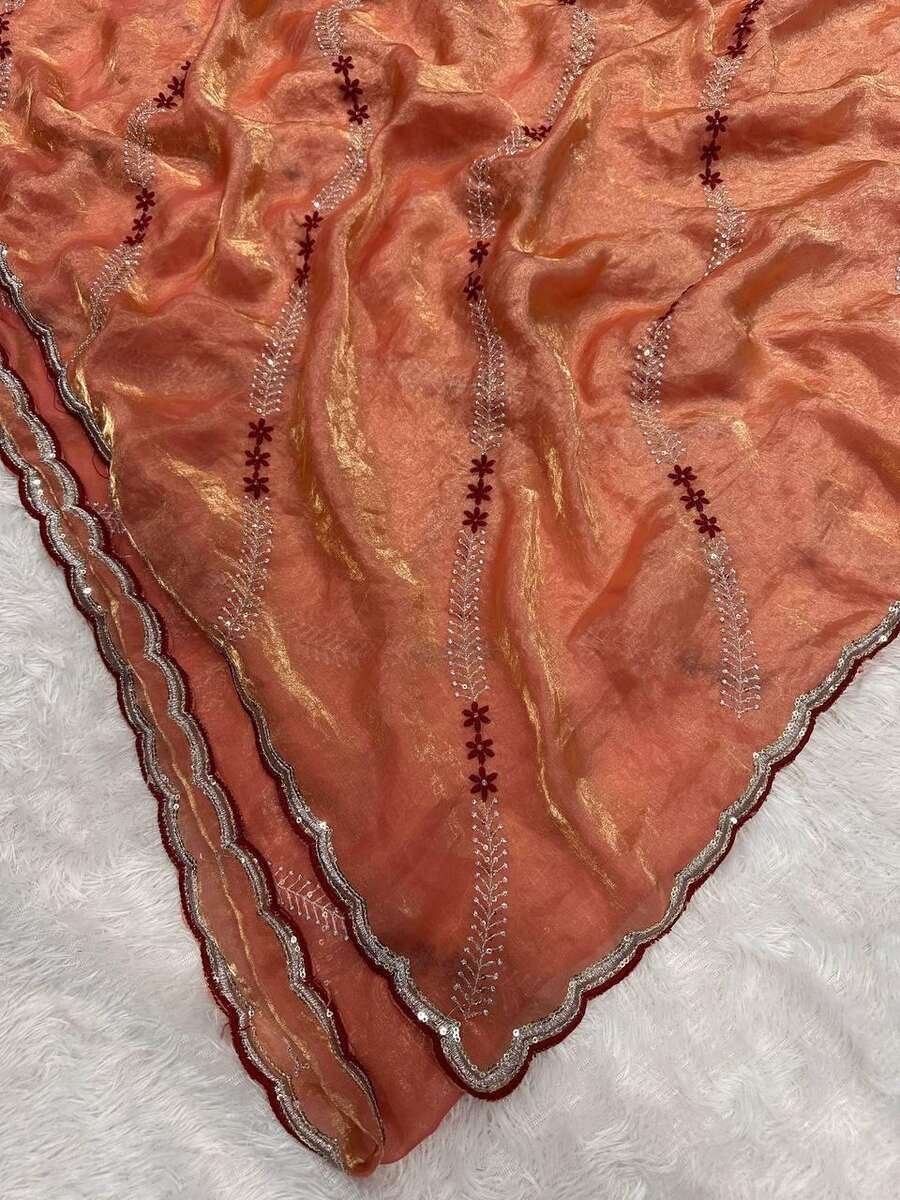 ATTRACTIVE SPACE SILK SEQUENCE AND ZARI EMBROIDERY WORK SAREE WITH UNSTITCHED BLOUSE ORANGE