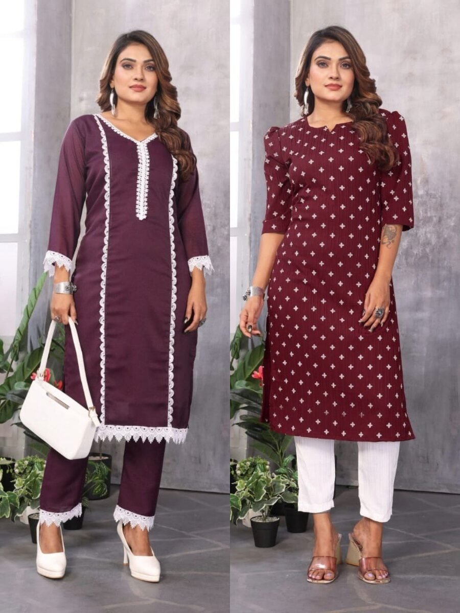 COMBO KURTI FABRIC : TOP AND PANT SUGARCANE WITH PRINT