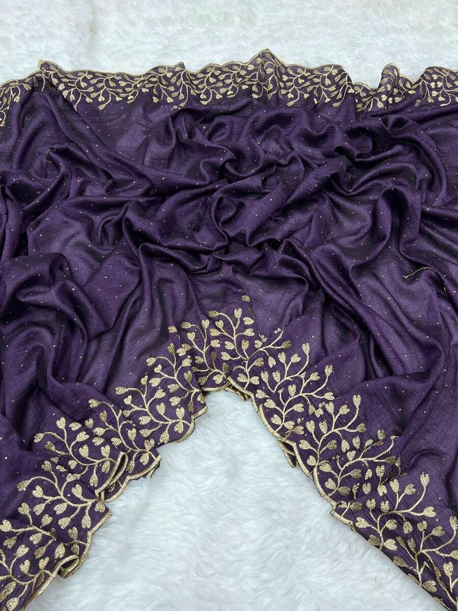 ATTRACTIVE VICHITRA SILK ZARI WITH STONE WORK SAREE WITH UNSTITCHED BLOUSE PURPLE