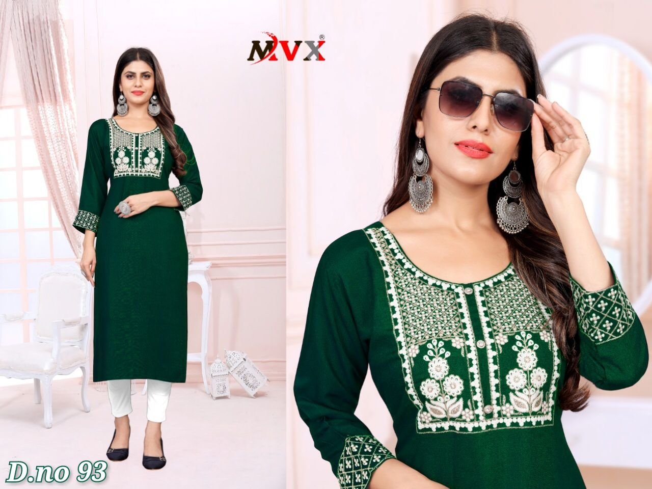 BEAUTIFUL LOOK RAYON WITH EMBROIDERY WORK KURTI GREEN
