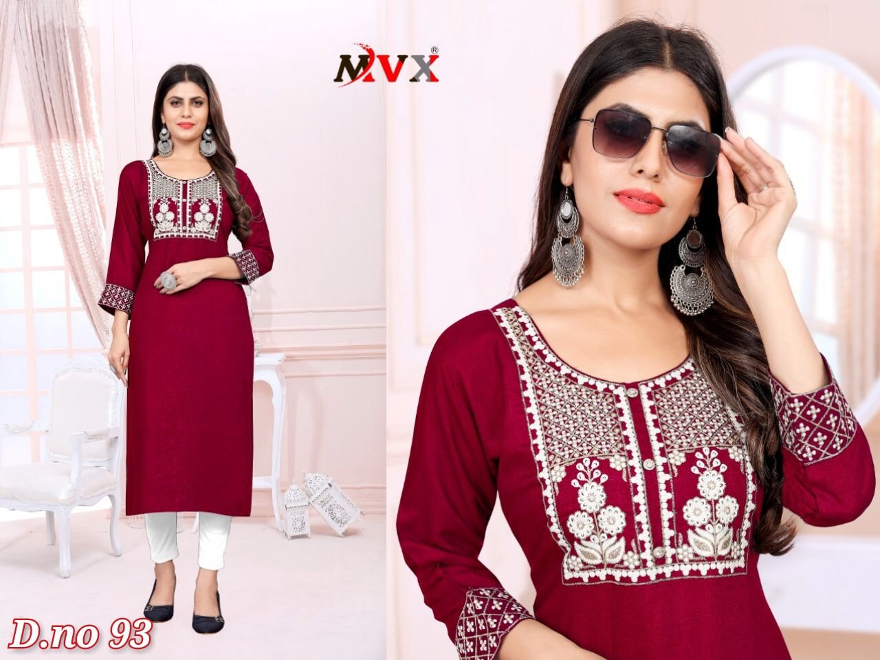 BEAUTIFUL LOOK RAYON WITH EMBROIDERY WORK KURTI RED