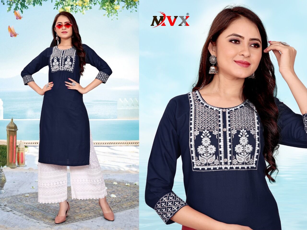 COLLEGE GIRL’S COLLECTION 14. KG RAYON WITH BEAUTIFUL EMBROIDERY WORK KURTI+PLAZZO NAVY