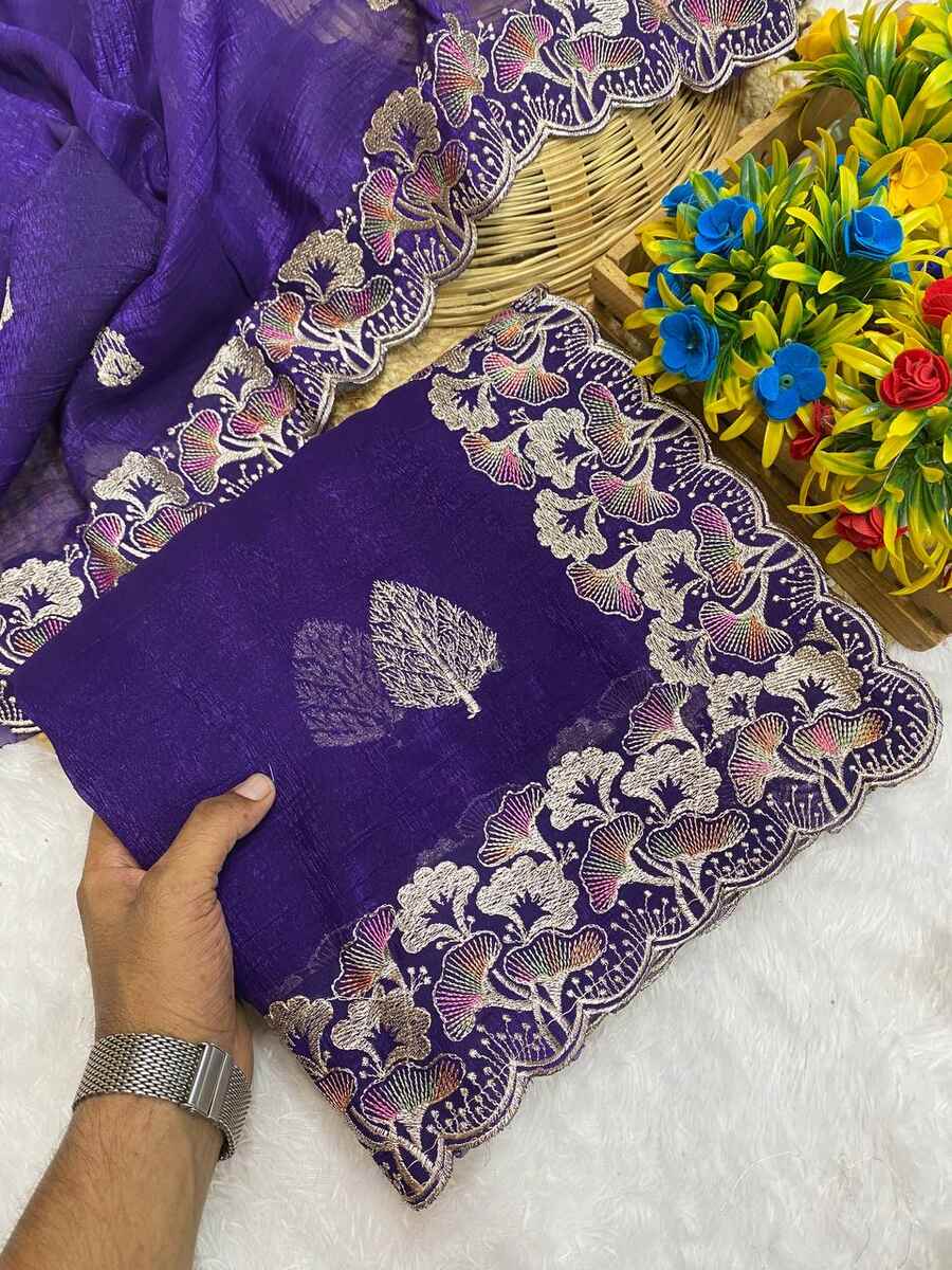 WORK : MULTI COLOUR THREAD EMBROIDERY WITH TRENDING CONTRAST PALLU CONCEPT