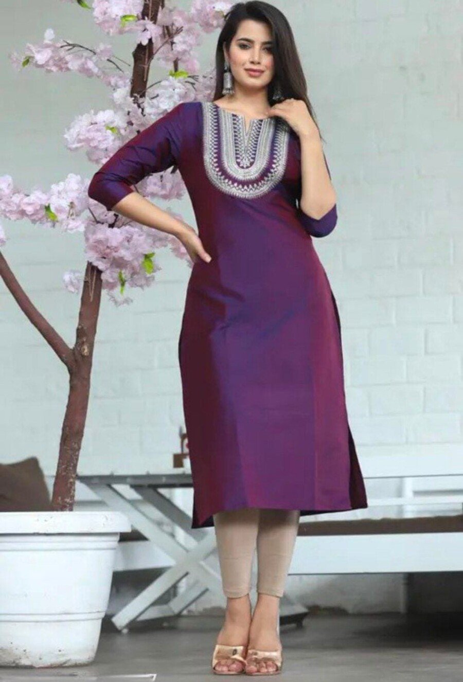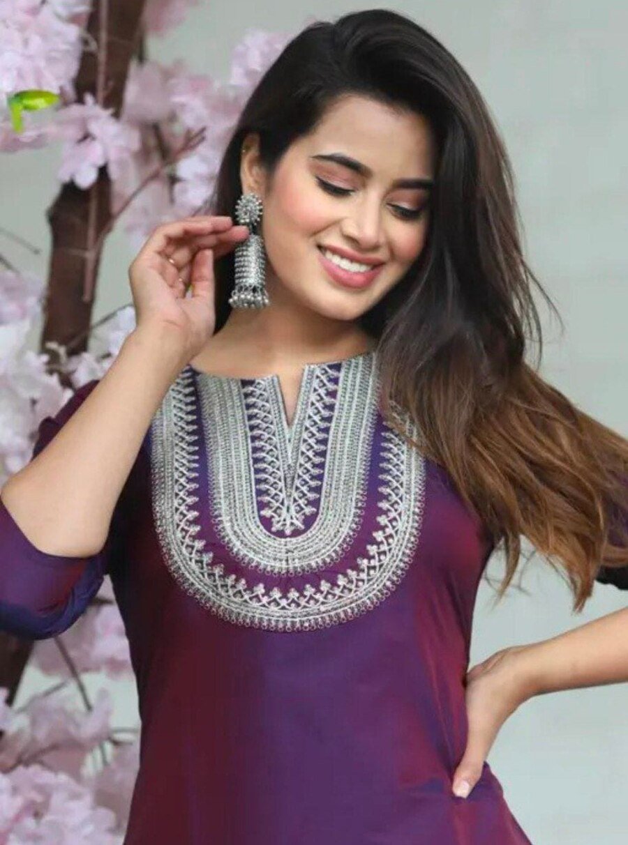 KURTI FABRIC :- ART SILK WITH EMBROIDERY WORK