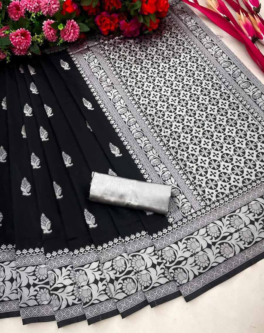 DESIGNER BANARASI SOFT SILK SAREE WITH UNSTITCHED BLOUSE BLACK
