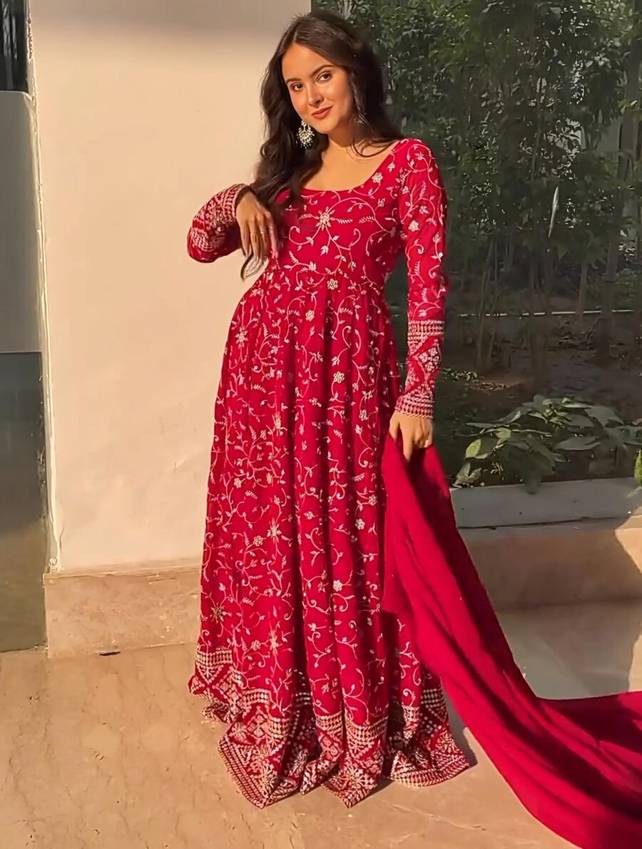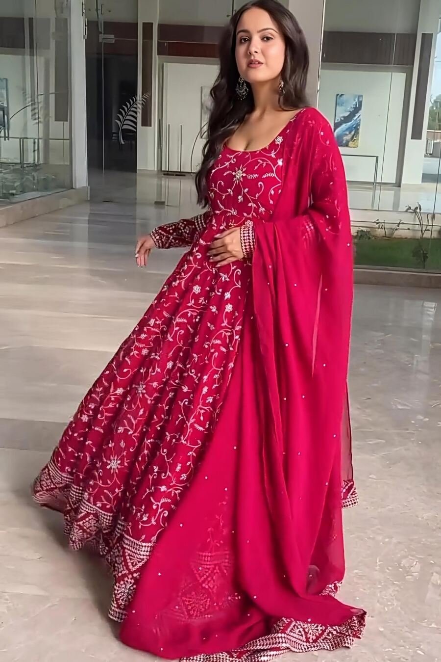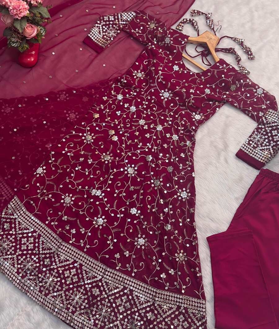 DESIGNER BLOOMING SEQUENCE AND THREAD EMBROIDERED WORK GOWN BOTTOM WITH DUPATTA MAROON