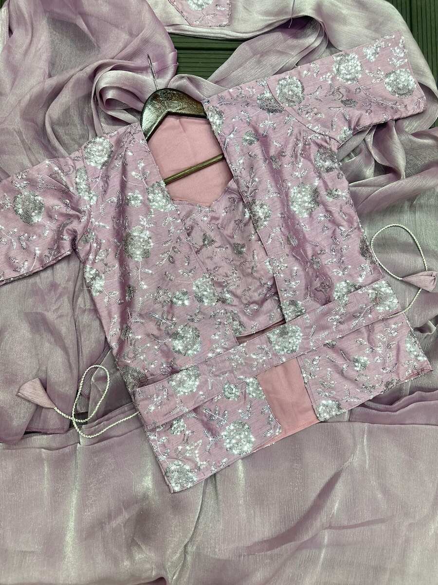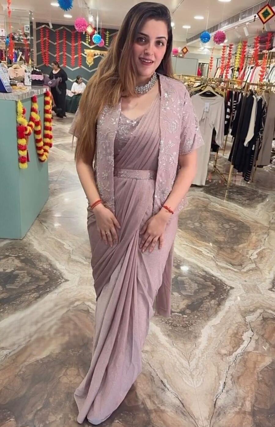 DESIGNER BURBERRY SILK READY TO WEAR SAREE WITH JACKET BABY PINK