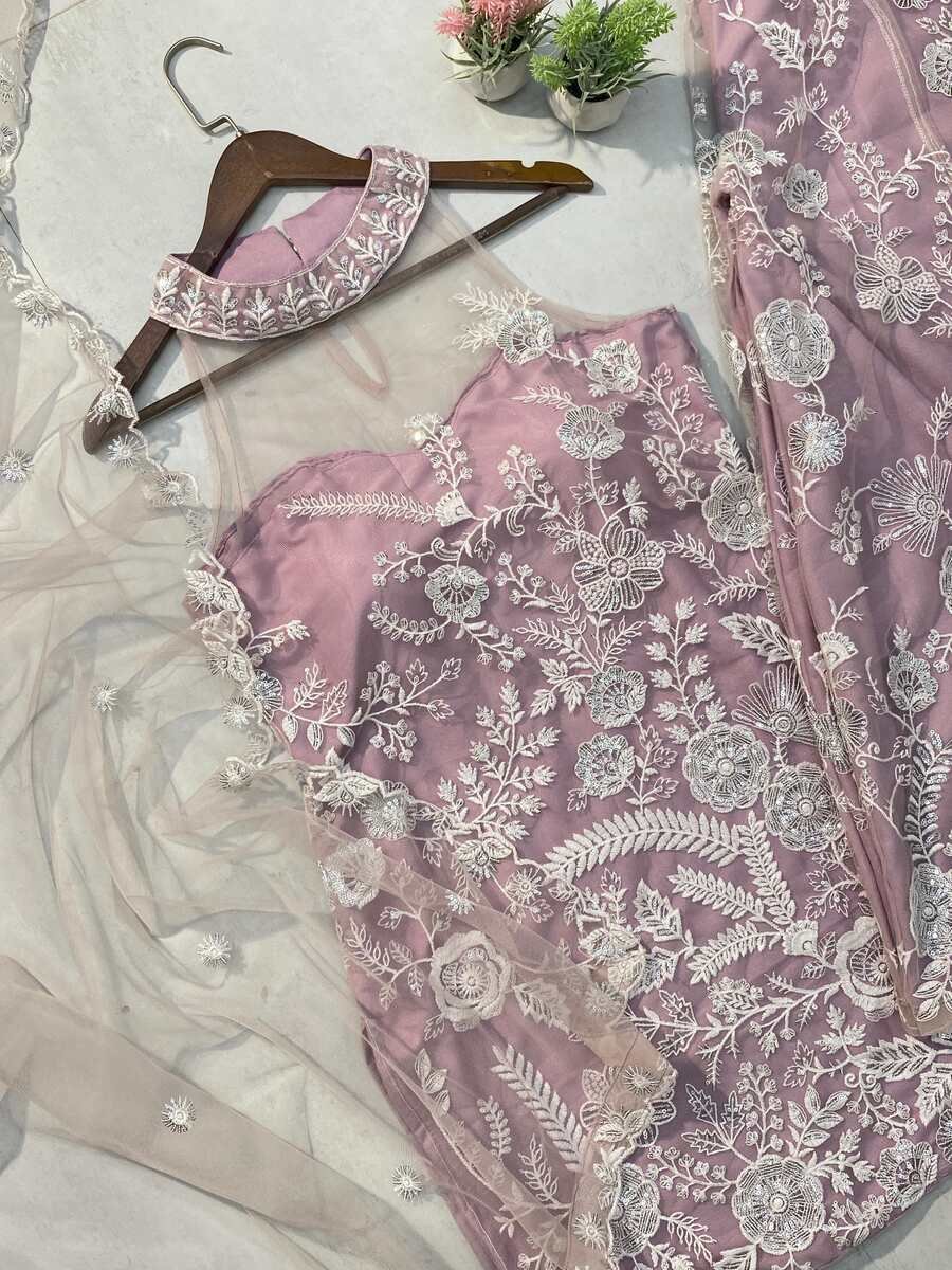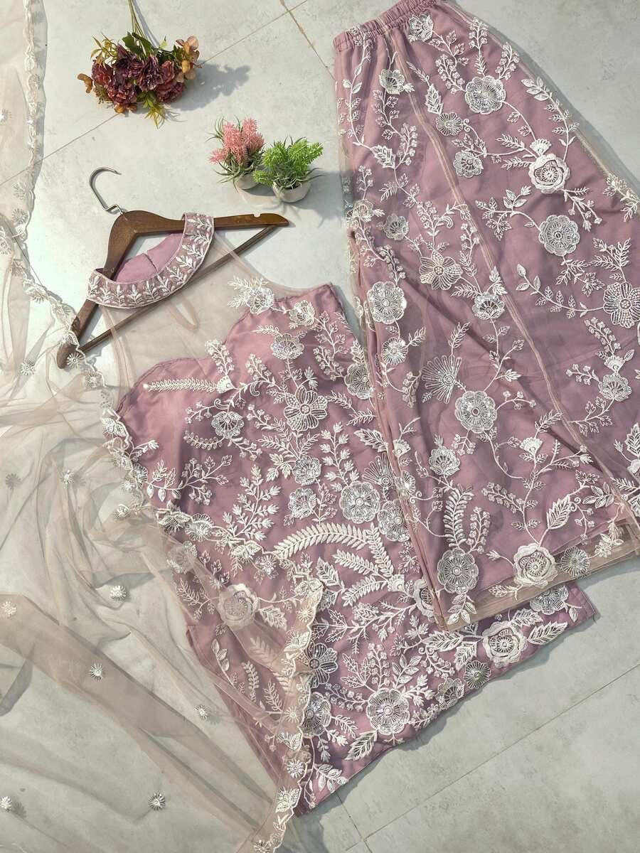 DESIGNER BUTTERFLY NET EMBROIDERY SEQUENCE WORK TOP PALAZZO WITH DUPATTA MINT