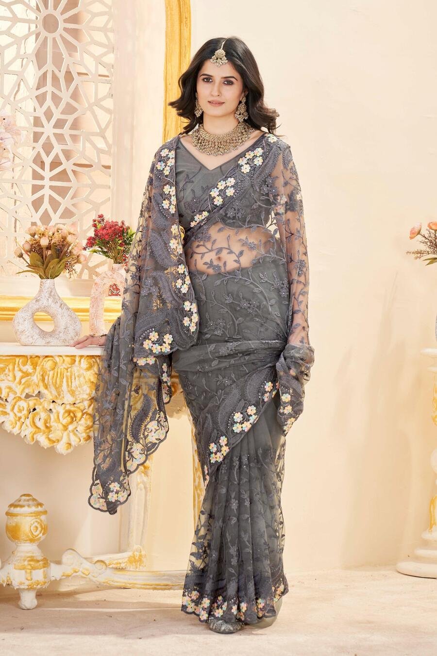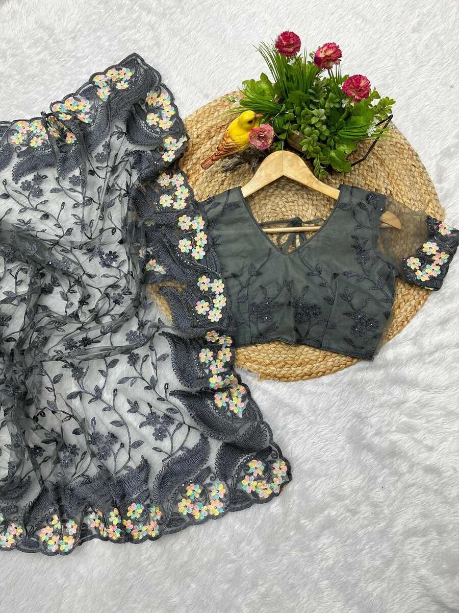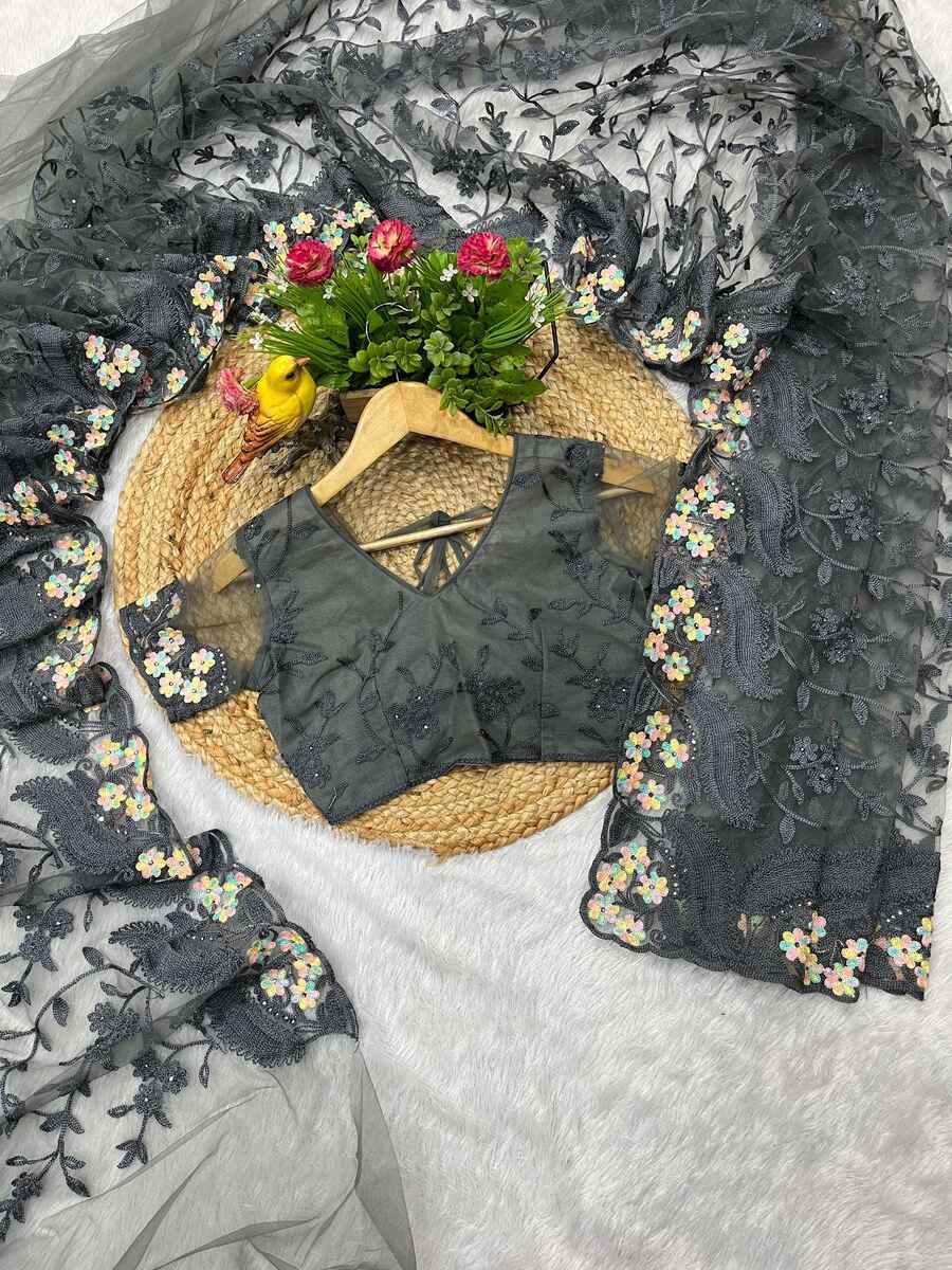 WORK : BEAUTIFUL CHAIN STITCH EMBROIDERY WORK OF MULTI COLOR THREAD WITH STONE WORK & CUTWORK BORDER