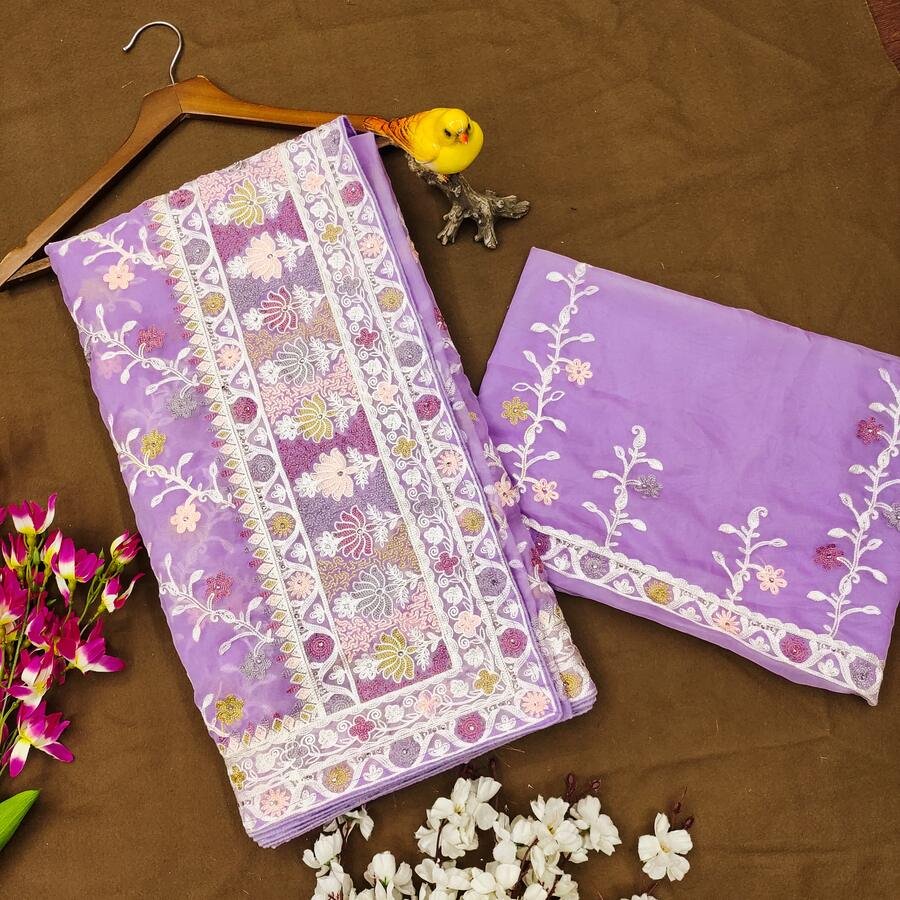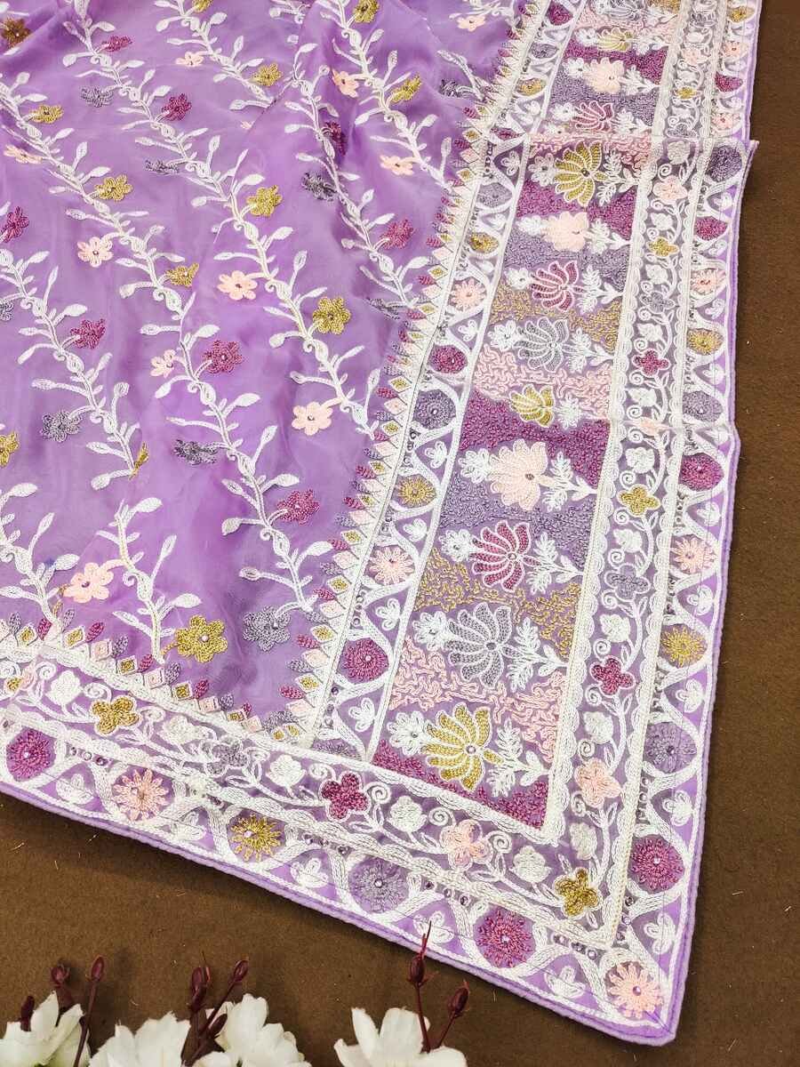 DESIGNER BUTTERFLY NET EMBROIDERY WITH STONE WORK SAREE WITH UNSTITCHED BLOUSE LAVENDER