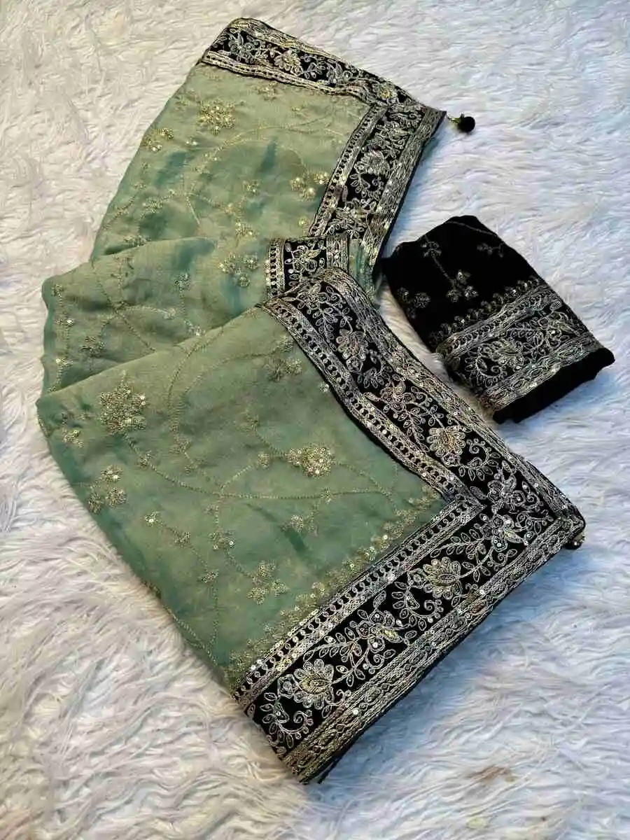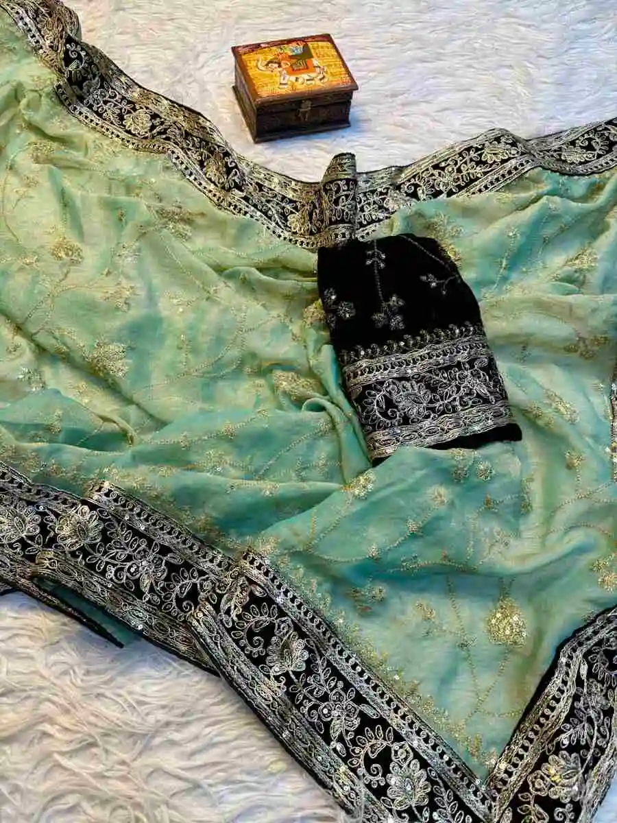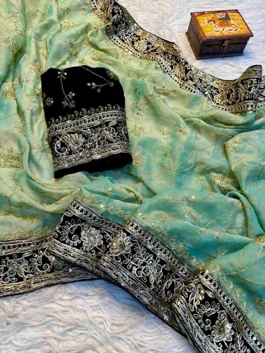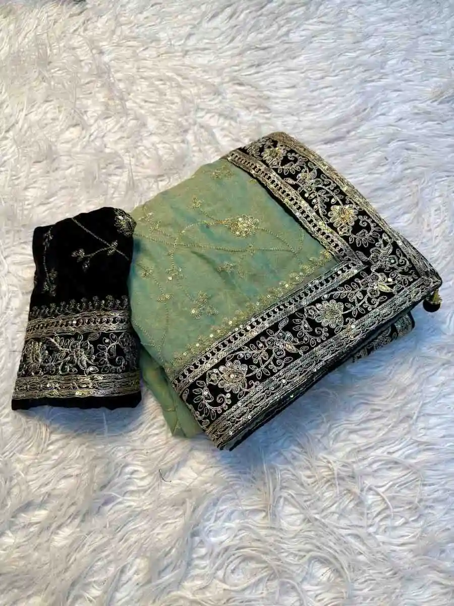 WORK : EMBROIDERY WORK LACE BORDER IN VELVET FABRIC AND TASSEL ATTACHED IN PALLU