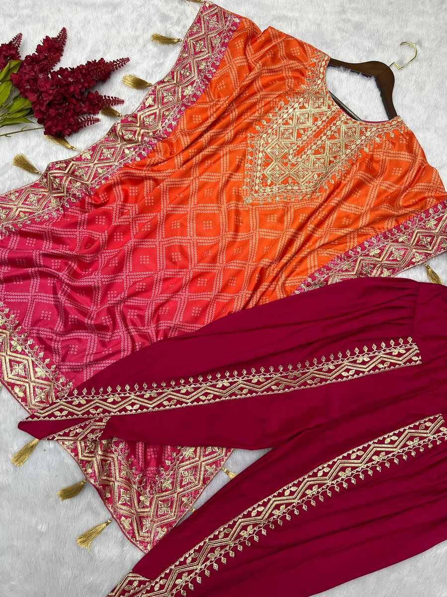 WORK :- ATTRACTIVE DIGITAL PRINT WITH EMBROIDERY WORK AND HANGING LATKAN