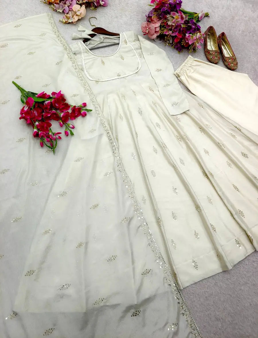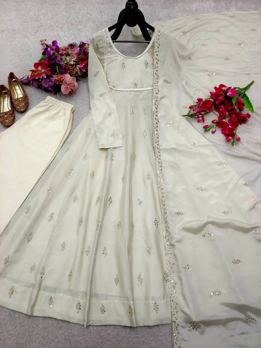 WORK : EMBROIDERY 5 MM SEQUENCE WORK WITH FULL-SLEEVE FANCY MOTI LACE