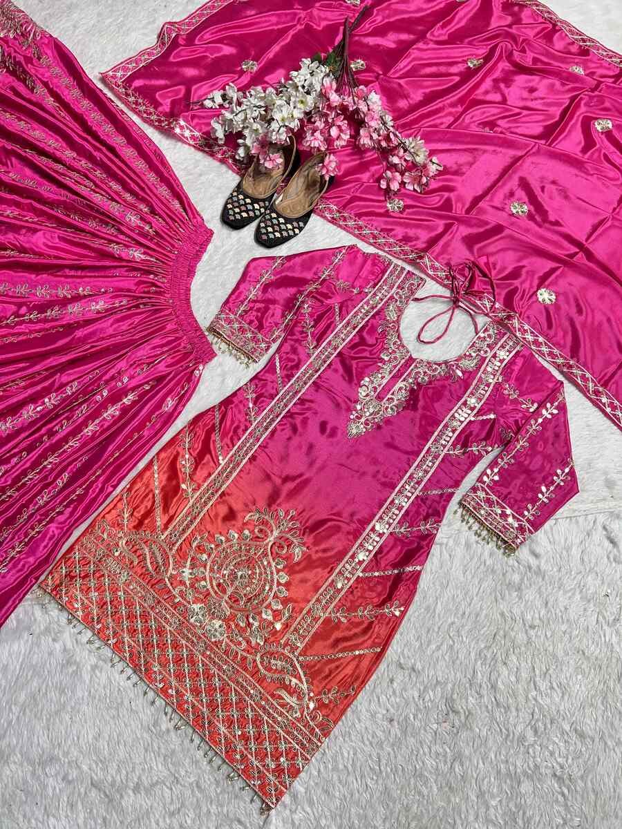DESIGNER CHINON EMBROIDERY CODING SEQUENCE WORK TOP PALAZZO WITH DUPATTA RANI