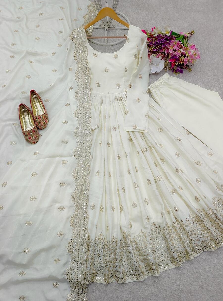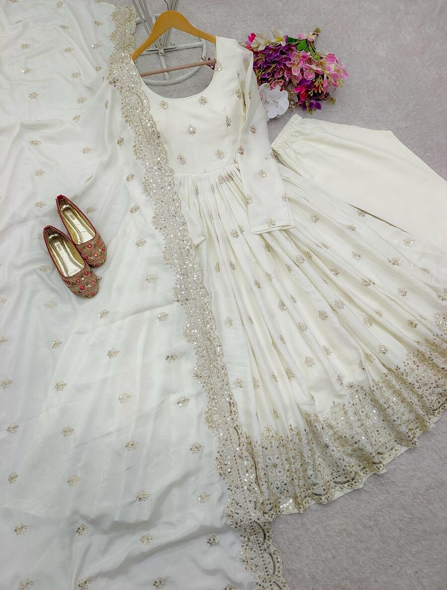 FABRIC : PURE CHINON SILK WITH HEAVY EMBROIDERY 5MM SEQUENCE WORK WITH FULL 24-25 INCH SLEEVE WITH (ATTACHED PAD)