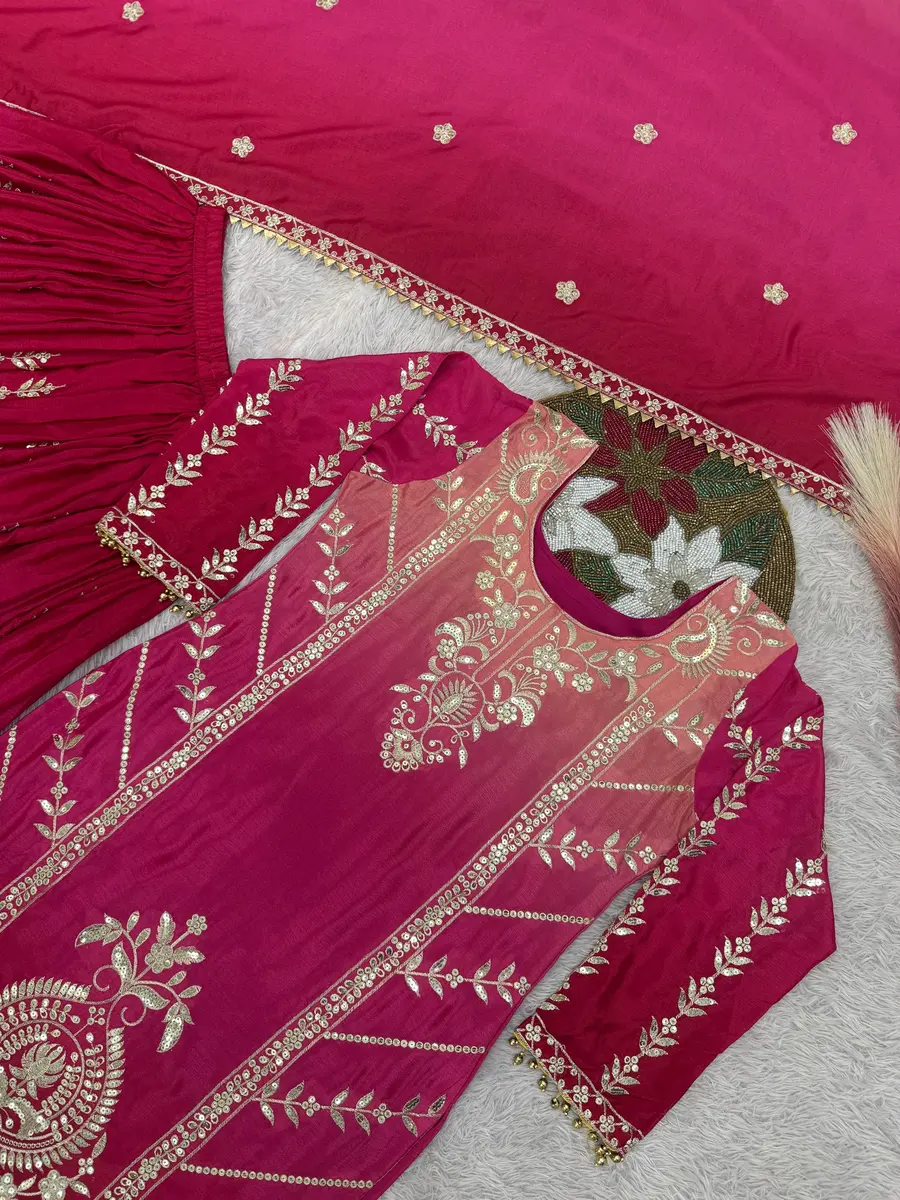 WORK : FANCY EMBROIDERY AND SEQUENCE WORK WITH READY MADE LACE BORDER