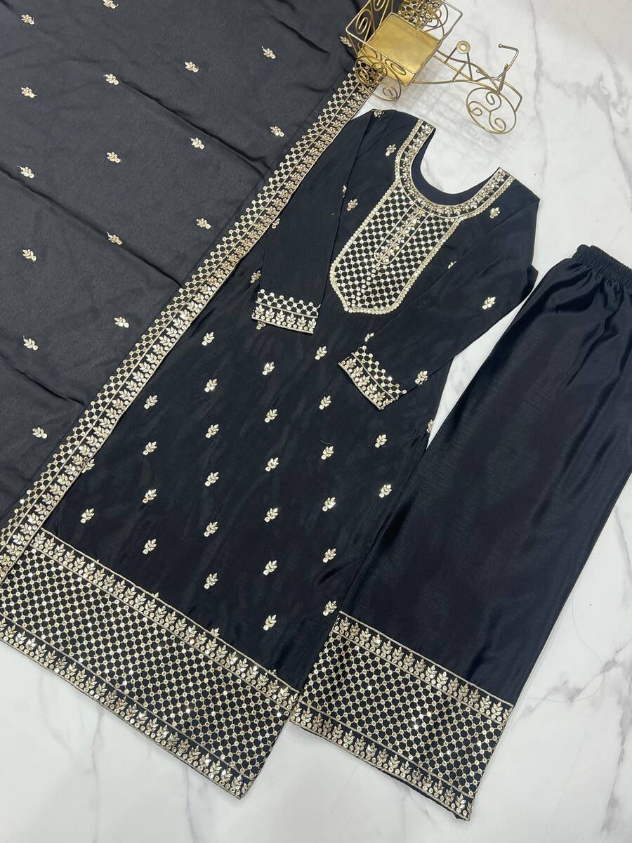 TOP FABRIC :- PURE CHINON SILK FABRIC WITH BEAUTIFUL EMBROIDERY SEQUENCE AND JARI WORK ON YOKE,SLEEVES,BOTTOM LACE WORK,ROUND NECKLINE